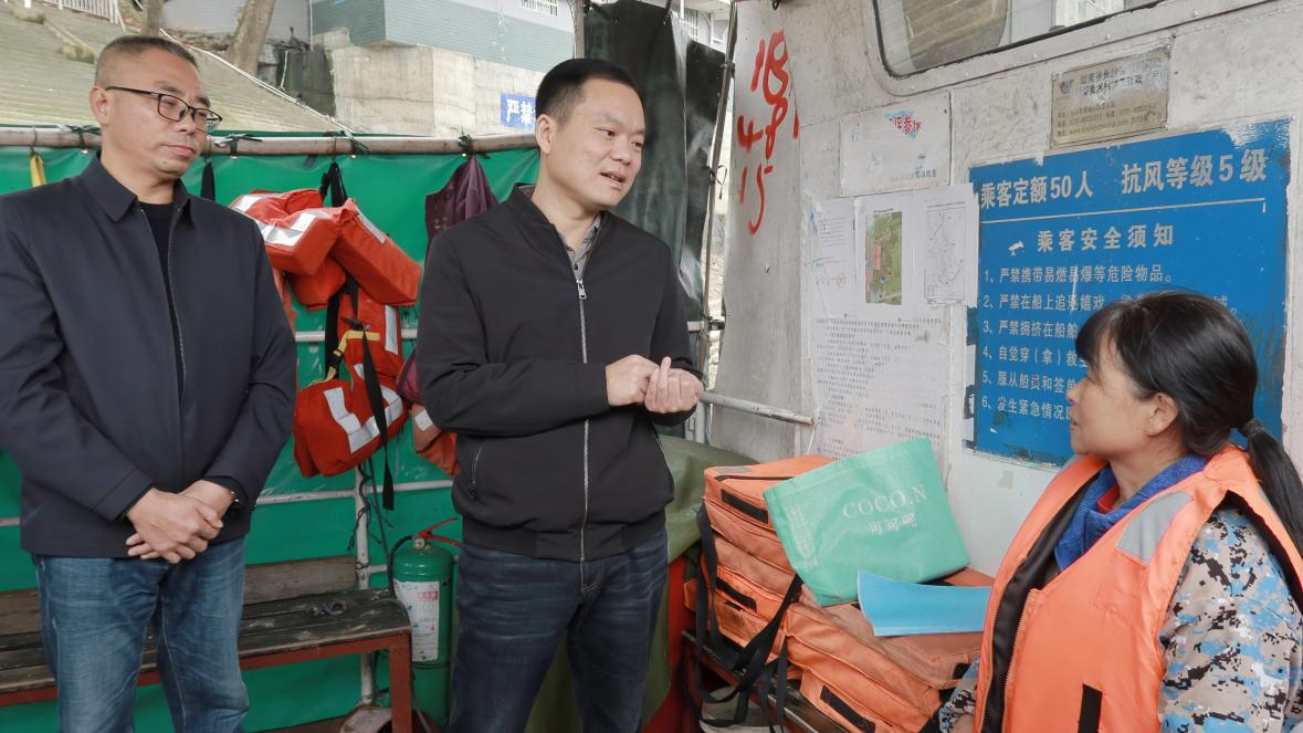 在铜湾镇铜湾码头,胡杰现场察看签单发航、救生衣穿戴等安全管理措施执行情况。他强调,要严格落实船舶适航和船员适任要求,强化安全教育培训,加强属地乡镇与行业主管部门协调联动,紧盯渡口、码头等重点区域,运用电子巡查与现场检查相结合的方式,常态化开展风险隐患排查治理,织密水上交通安全“防护网”。