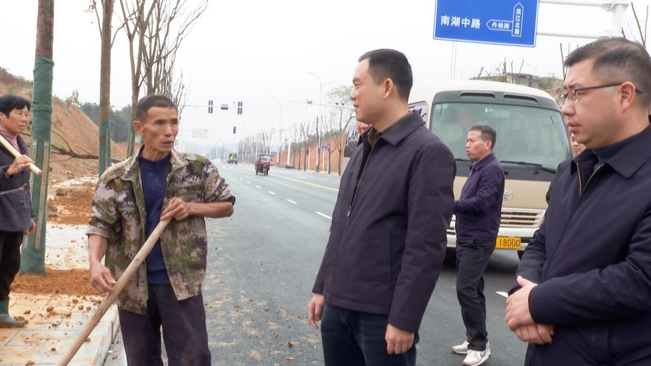 随后,胡杰来到㵲水休闲廊道滨江北路,与现场施工人员深入交流,实地调研项目建设情况。