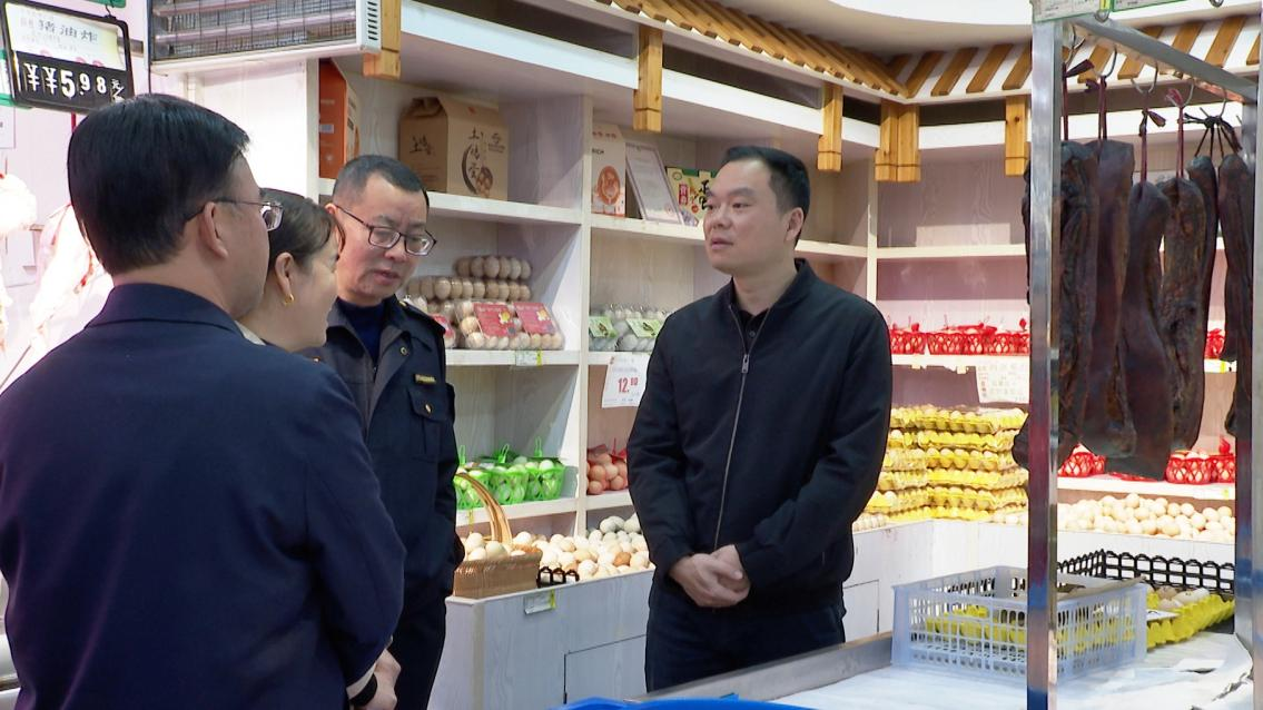 在华丰超市,胡杰与企业负责人深入交流,详细了解生产经营、安全责任落实、隐患排查整治等情况。他强调,要压紧压实属地管理、行业监管和企业主体责任,聚焦人员密集场所,深入排查各类安全隐患,扎实做好应急演练、安全培训和宣传引导,切实提升从业人员应急处突能力,全面筑牢消防安全防线。要持续加大食品安全监管力度,严把原料入口、加工生产、产品检验全链条关口,进一步规范企业经营行为,全力守护好人民群众的“米袋子”“菜篮子”“果盘子”。