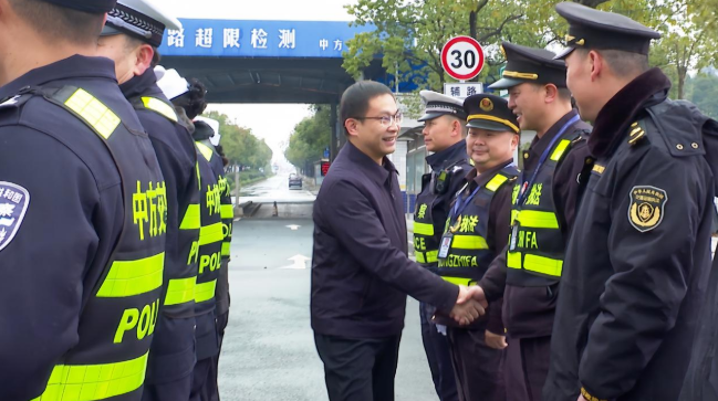 在中方县鸭嘴岩治超站,周华特向坚守一线的交警和交通执法人员致以节日问候。他表示,春节期间人流车流密集、保畅任务繁重,希望大家值好班、站好岗,科学做好调度安排,为群众出行营造安全有序的道路交通环境。