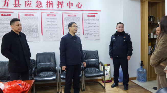 随后,周华特来到县应急指挥中心,详细了解全县重点行业领域安全防范措施落实、应急值班值守等情况,叮嘱值班人员要始终保持“时时放心不下”的责任感,严格落实值班带班制度,紧盯节日期间安全生产重点环节,强化烟花爆竹禁燃禁放管控,健全应急处置联动机制,确保应急指挥响应及时、调度精准、处置有力,切实保障全县人民群众生命财产安全。