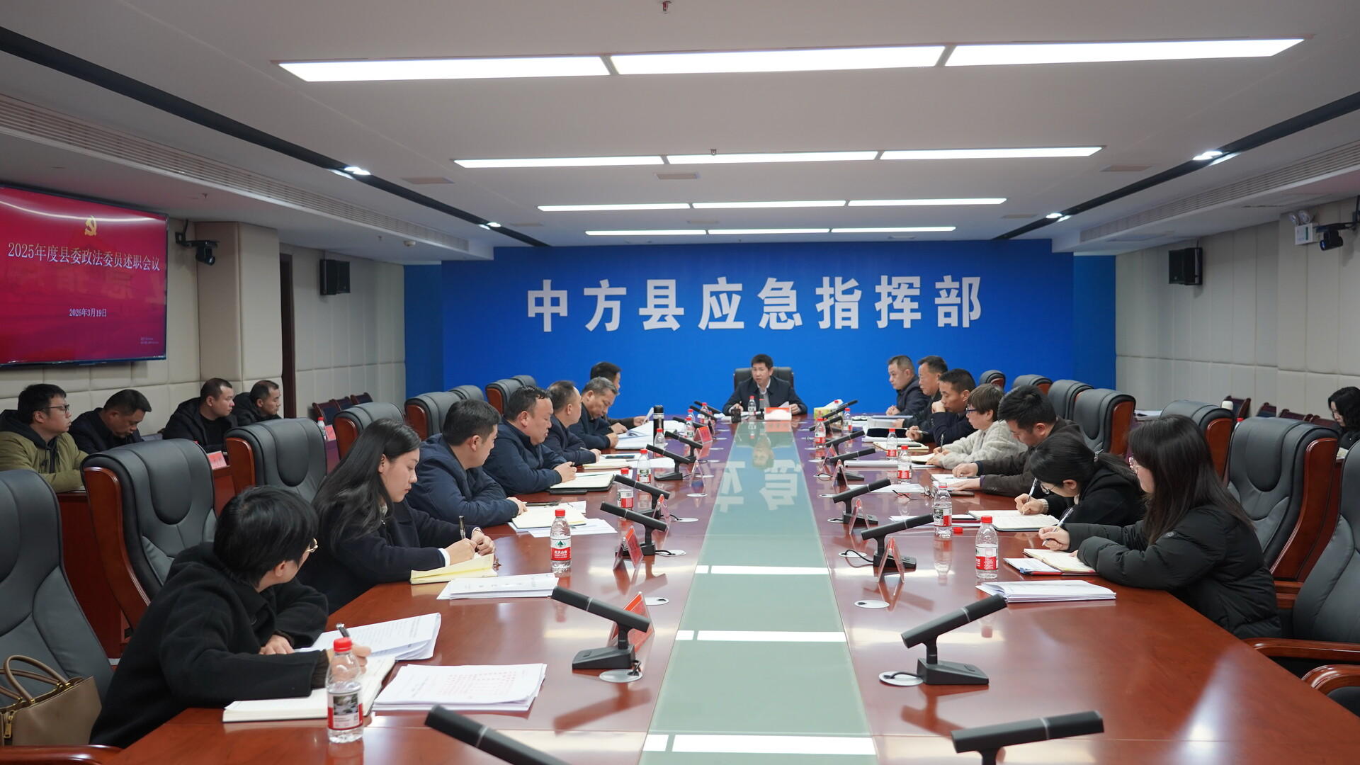 会上,传达学习了中央、省、市政法工作会议精神,县委政法委员就2025年度履职情况分别进行述职,杨春斌逐一点评。