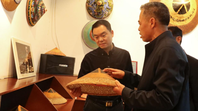 在铜锣村中方斗笠展示馆,胡杰仔细询问斗笠制作技艺传承、发展现状、市场销售等情况。他强调,中方斗笠要立足本地特色,通过搭建展示平台、培育传承人才、打造特色品牌,更好地推动非遗与旅游、文创等产业深度融合,在保护传承中创新发展路径。