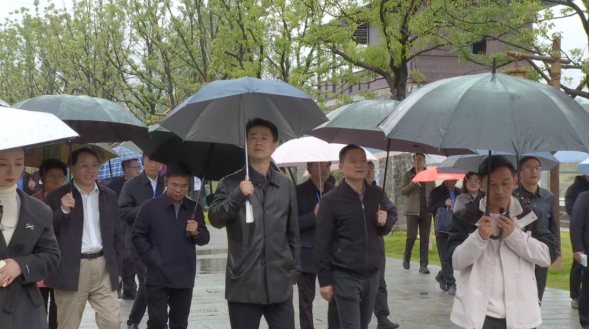 在潘氏宗祠门前广场,观摩团通过三块主题展板,详细了解荆坪古村历史文脉、古村提质改造情况和以工代赈项目建设进度。沿七星古树、古驿道至三叠月塘的观摩途中,解说员围绕主体工程、附属临建、工地服务及建后管护等环节,全面介绍了在荆坪古村提质改造过程中吸纳当地劳动力参与的具体举措。