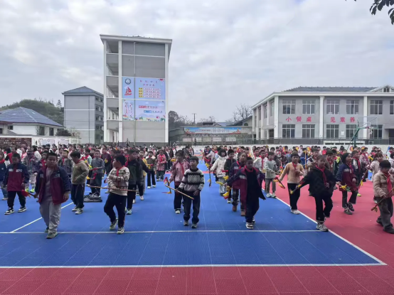 活动伊始,总校班子成员观摩了铜湾镇中心小学的特色大课间。跑操环节中,学生步伐整齐、口号嘹亮,展现出蓬勃朝气;地方特色霸王鞭表演将地域文化与体育融合,体现了学校独特的育人理念。这一环节不仅展现了学生的活力,也凸显了学校在文化传承与创新方面的探索。