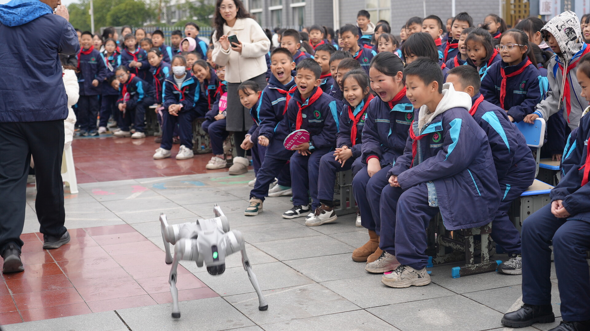 活动现场,“机器人”灵活挥摆、“机器狗”踩点打滚,同学们纷纷被这场创意表演点燃。随后,如梦似幻的干冰秀瞬间将舞台变成“云端实验室”,玩转气流的气球大风车、威力十足的烟雾空气大炮与见证大气压奇迹的马德堡半球实验接连登场,引得同学们连连欢呼。“这次科技节的科学实验都很有趣,让我感受到了科技的魅力,今天我特别开心”中兴小学学生金熙俊激动地表示。