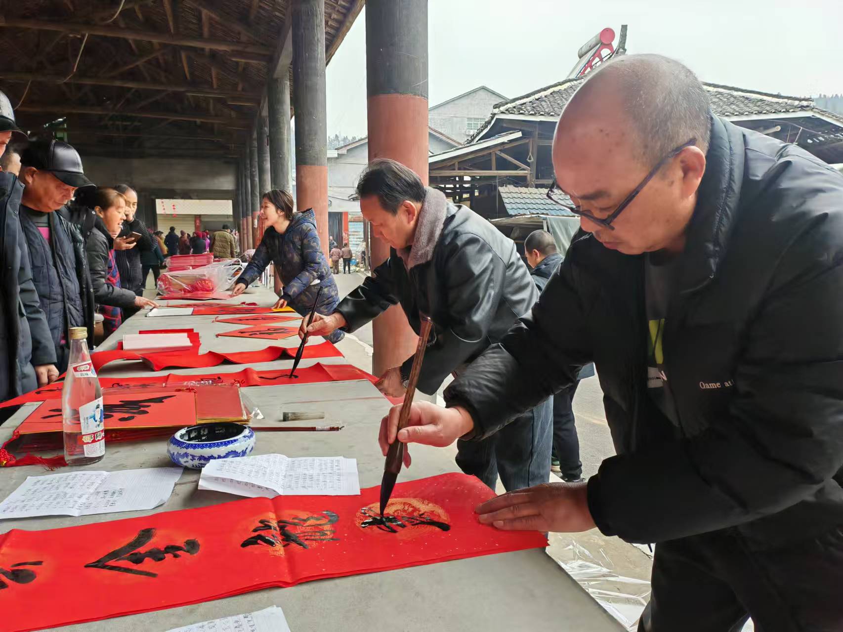 1月18日,中方镇炉亭坳村利用赶集日开展“写对联、送对联、送戏下乡”活动。