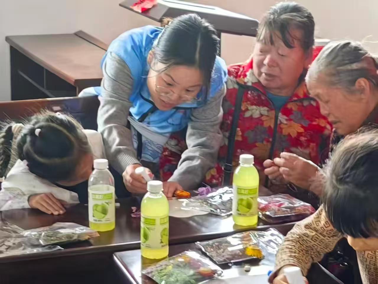 “孝亲互动”环节更是拉近了两代人的距离。儿童们积极为老年人捶背、剪指甲,陪老人们唠家常。在做手工过程中,老人与儿童通力合作,一把把手工压花扇展示出来,不少儿童表示要把作品带回家给亲人们分享。