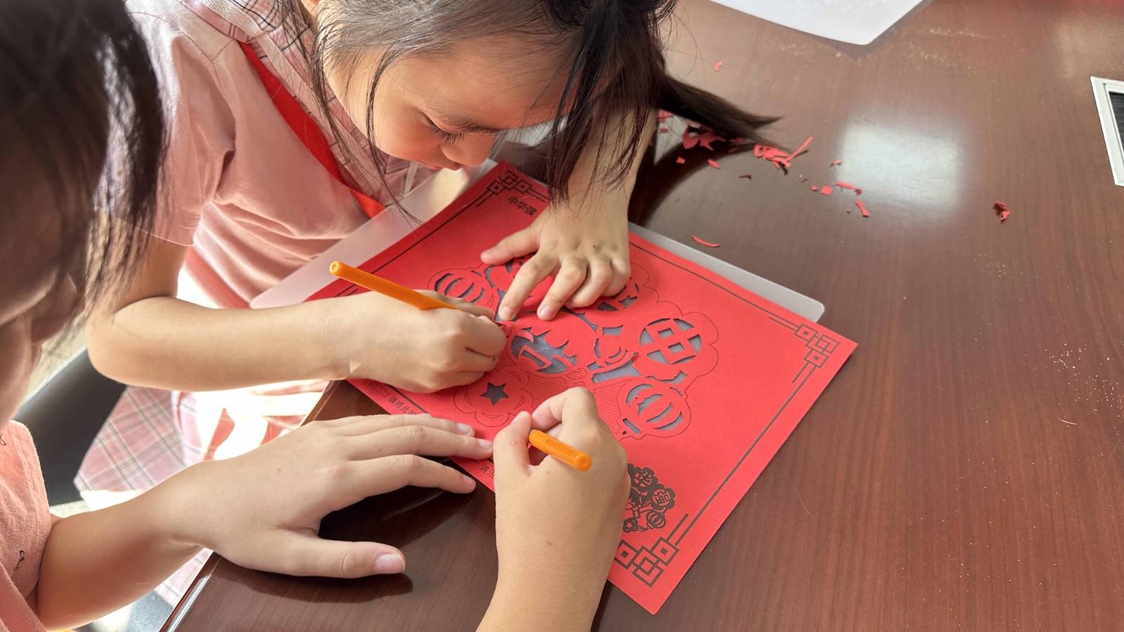 本次活动将非遗技艺与爱国主义教育相结合,让抽象的情感变得可触可感,让厚重的历史在童心中生根发芽。活动现场,孩子们神情专注,沿着线条小心翼翼地裁剪。偶尔有孩子遇到困难,在社工和家长耐心指导下,他们学会了坚持与完善。在这个追求效率的时代,这场活动让孩子们体验到了“慢工出细活”的传统工艺精神。