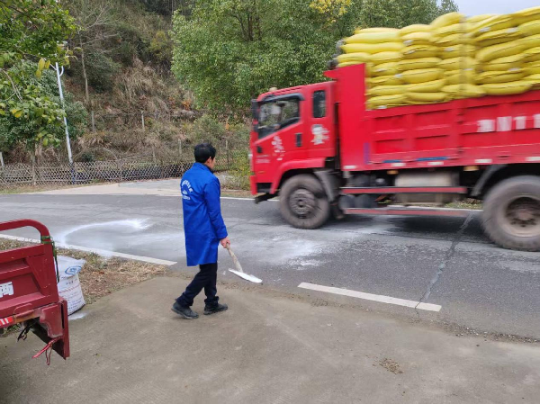 闻“雪”而动,全力保障道路畅通。桐木镇第一时间组建由镇村干部、党员志愿者、应急抢险队员组成的专项队伍,实行24小时道路巡查值守制度,对镇内主干道、乡村公路、桥梁陡坡、学校医院周边等重点路段开展拉网式巡查,实时掌握路面结冰、积雪情况。针对易结冰路段,工作人员手持铁锹精准播撒工业盐加速融冰,确保积雪结冰及时清除。同时,在急弯、陡坡、临水临崖等危险路段规范设置“路面结冰”“减速慢行”等警示标牌30余块,交通劝导员按照“七必上”原则,上路开展劝导引导车辆通行,切实做到“雪不停、人不歇,路不净、不撤岗”,全力保障群众出行安全。