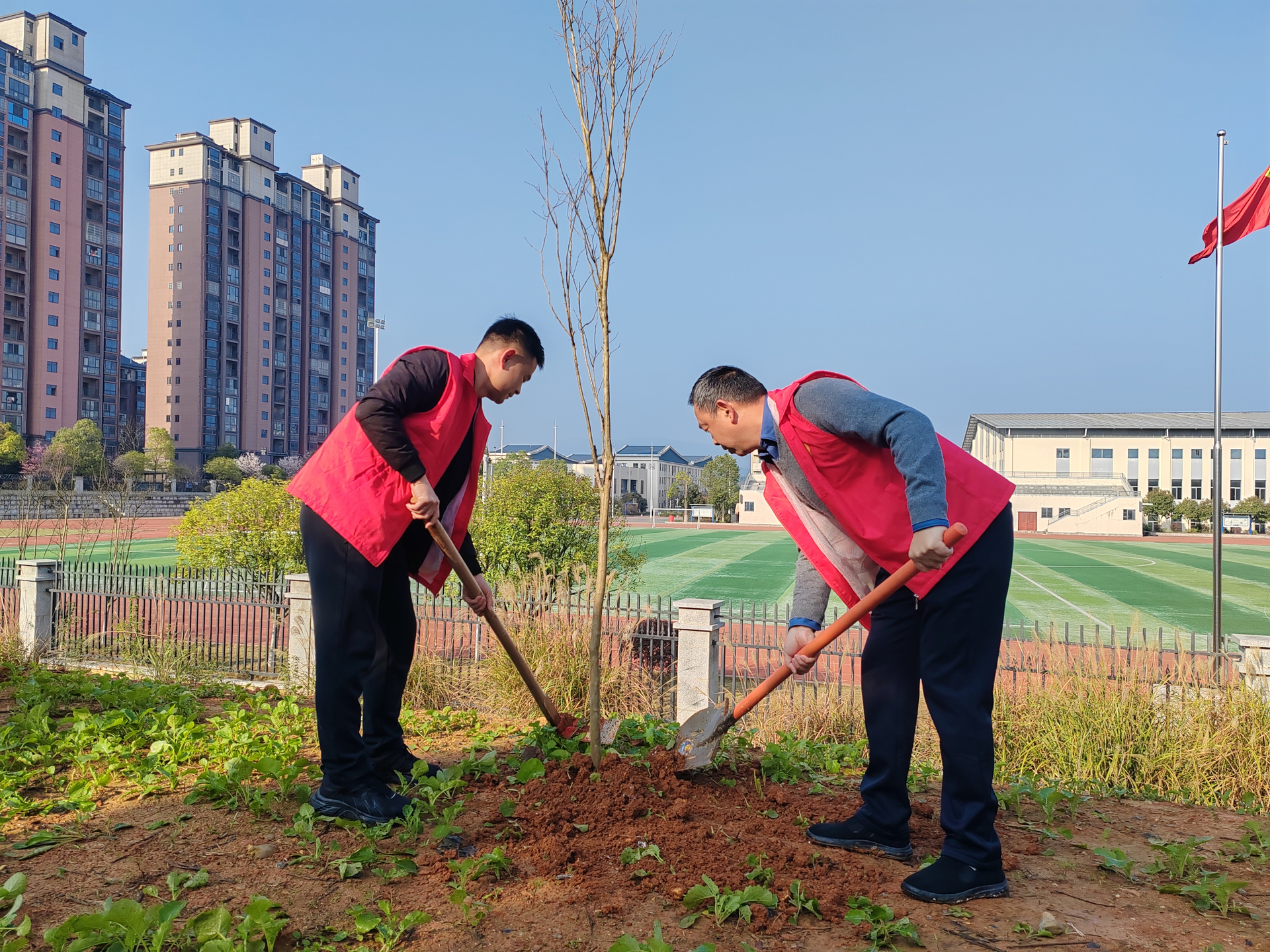 春风拂面绿意浓 中方县中方镇党员干部义务植树美化校园