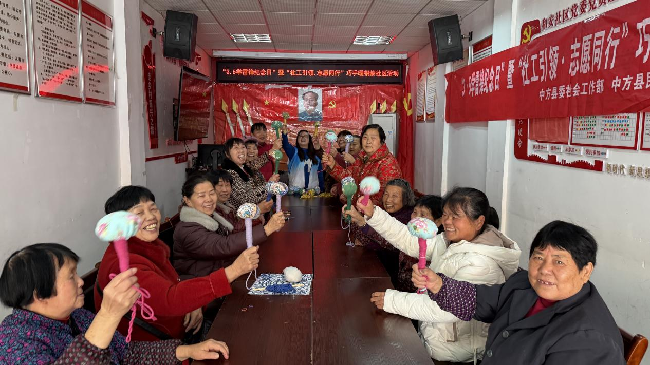 3月5日学雷锋纪念日,在中方县委社会工作部、中方县民政局的指导下,中方镇民政社工站在和安社区居委会开展“巧手暖银龄·匠心润社区”老年人手工便民活动,以“社工引领·志愿同行”为主题,将雷锋精神融入专业社工服务,为辖区老年人送去温暖与陪伴。