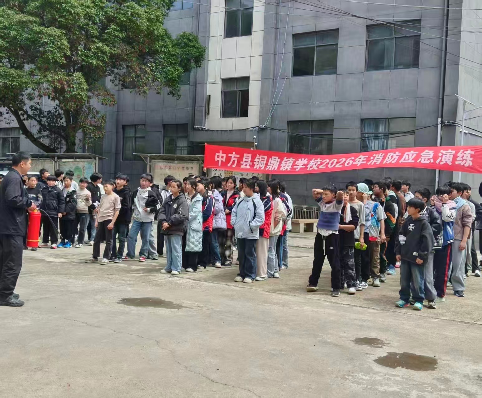 为进一步筑牢校园消防安全防线,提升学生应急避险与自救互救能力,中方县铜鼎镇政府联合学校开展2026年消防应急演练活动,以实战化演练上好“安全必修课”。