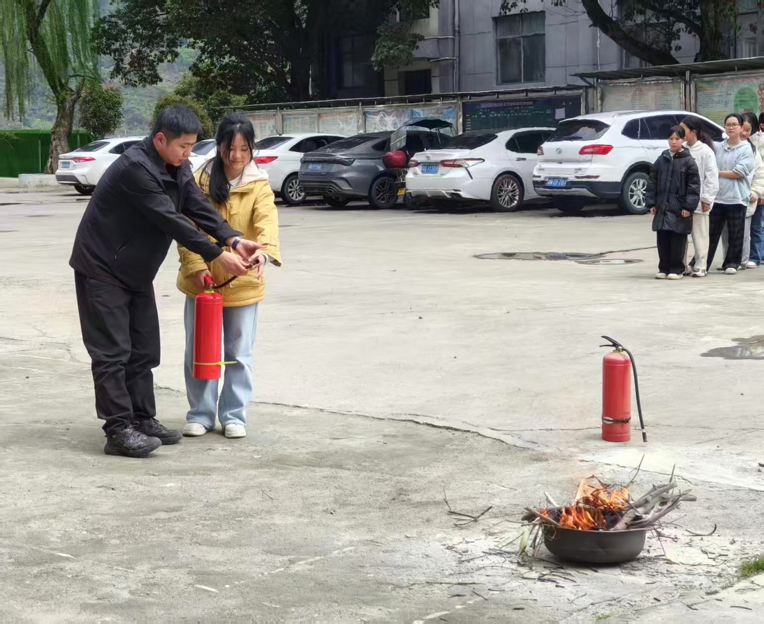 在正式演练前,政府工作人员围绕消防安全知识进行专题讲解,细致科普火灾危害、日常防火注意事项、灭火器使用方法及火场疏散逃生技巧等内容,结合典型案例警示学生重视消防安全,牢记应急要点。
