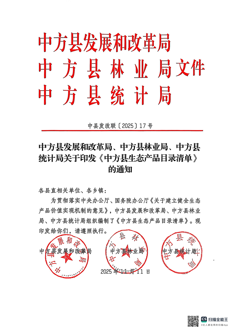 中方县发展和改革局中方县林业局中方县统计局关于印发《中方县生态产品目录清单》的通知