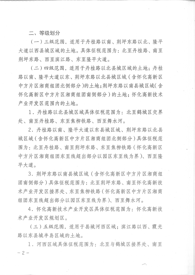 关于调整中方县城镇土地使用税地段等级适用税额标准和征收范围的通知