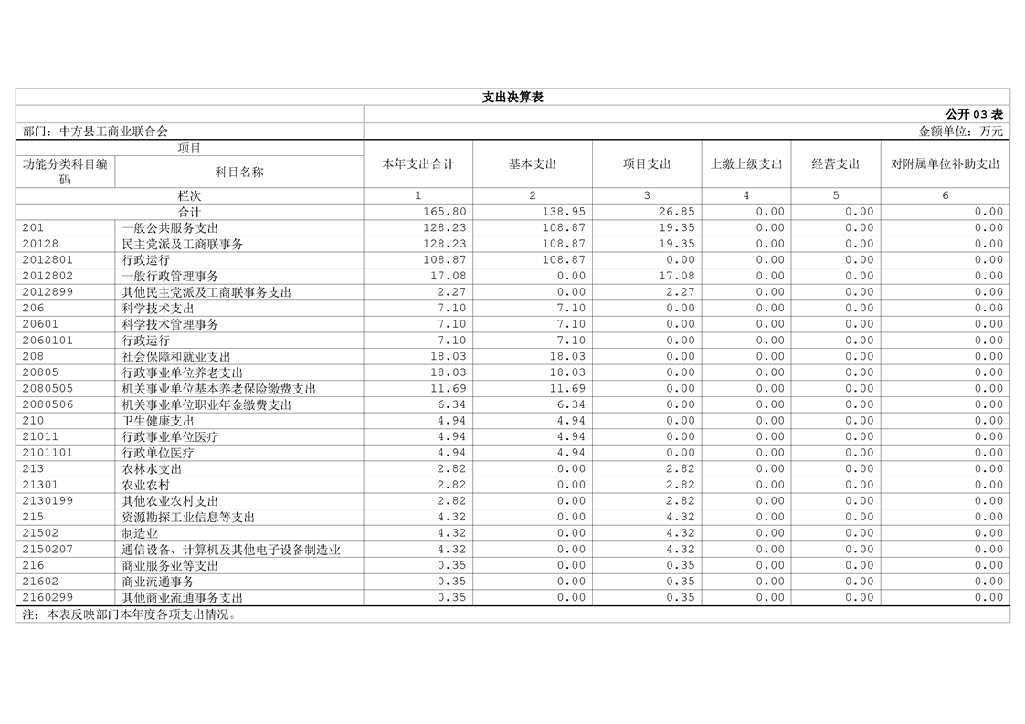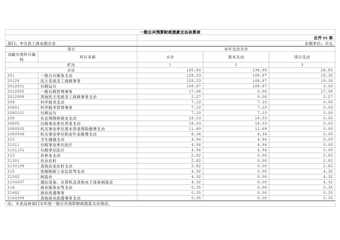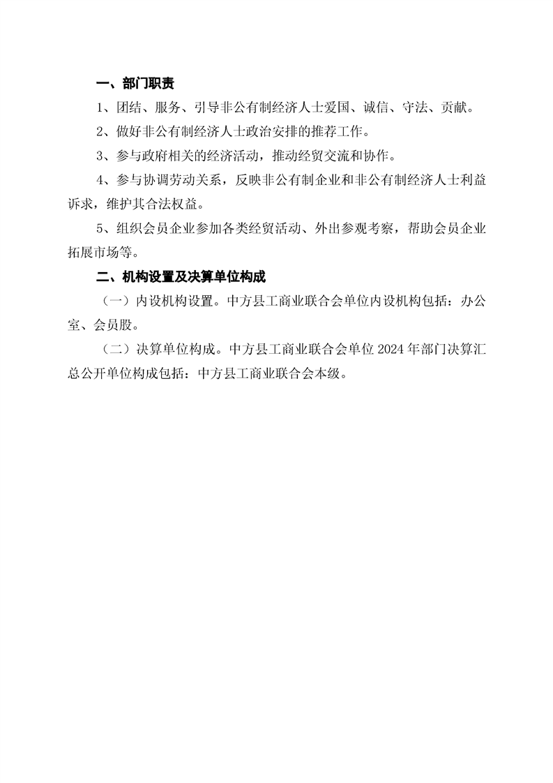 中方县工商业联合会2024年部门决算公开