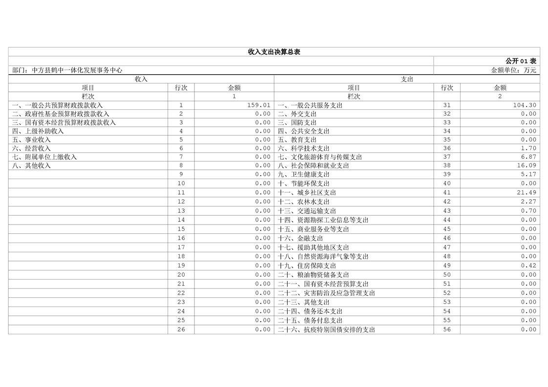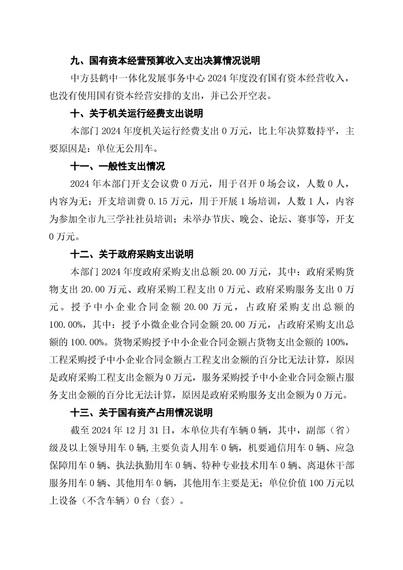 中方县鹤中一体化发展事务中心2024年部门决算公开