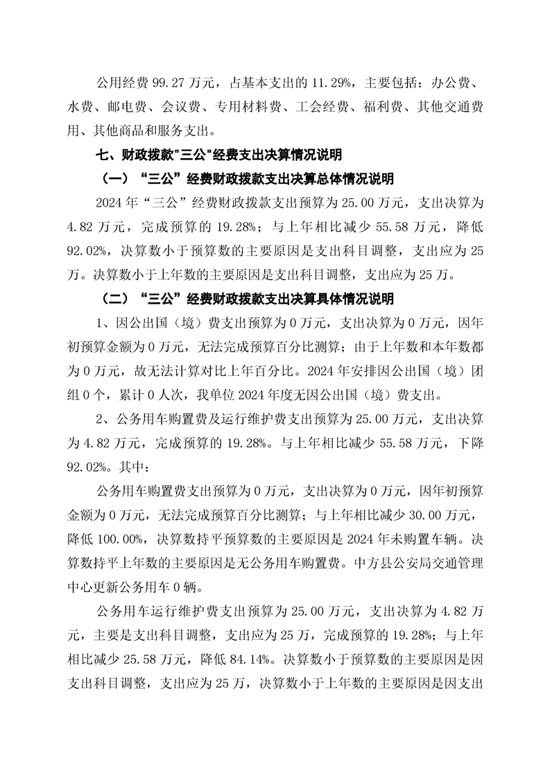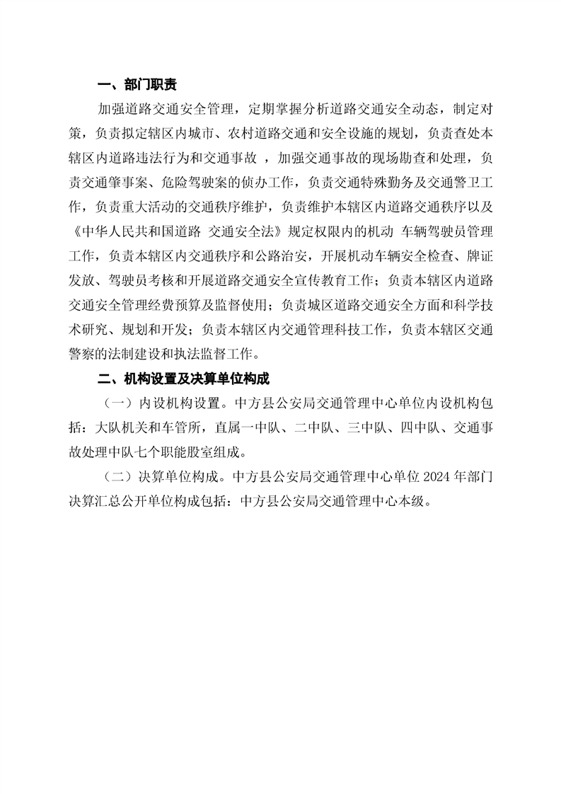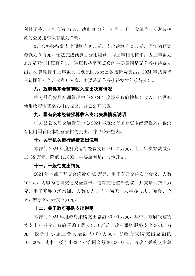 中方县公安局交通管理中心2024年部门决算公开