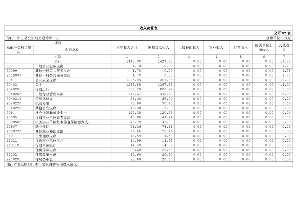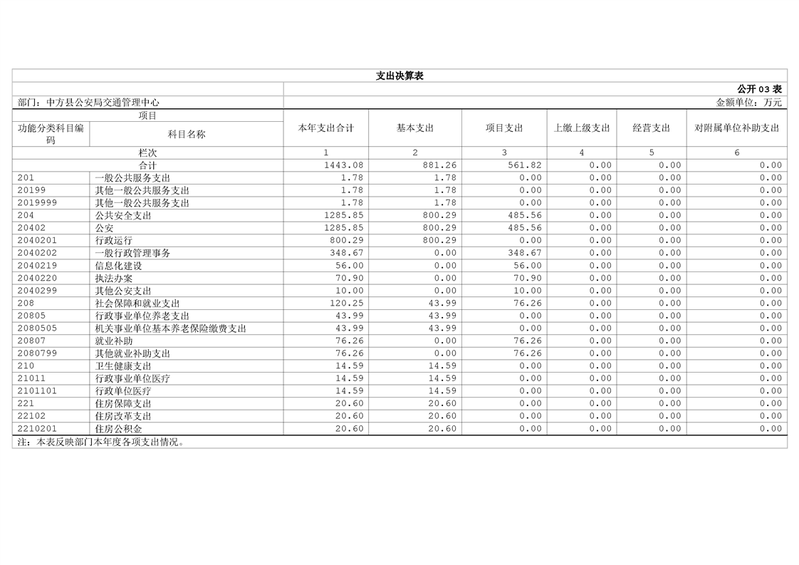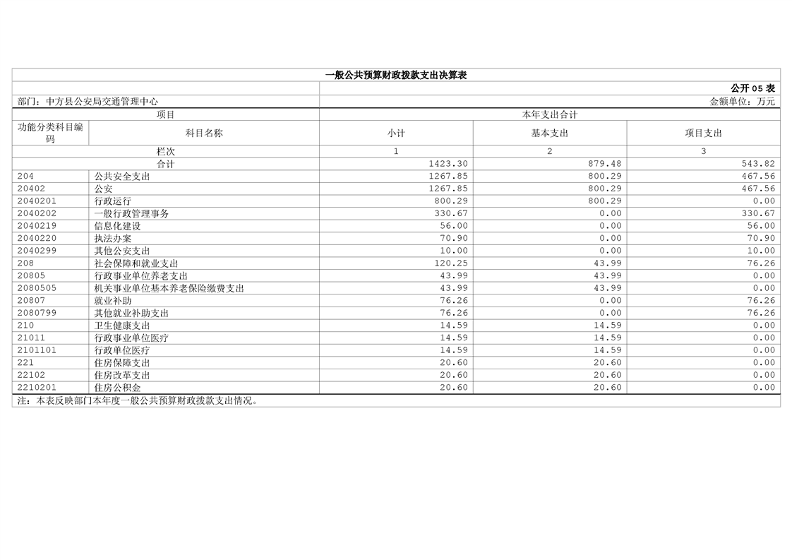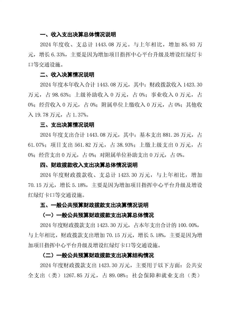 中方县公安局交通管理中心2024年部门决算公开