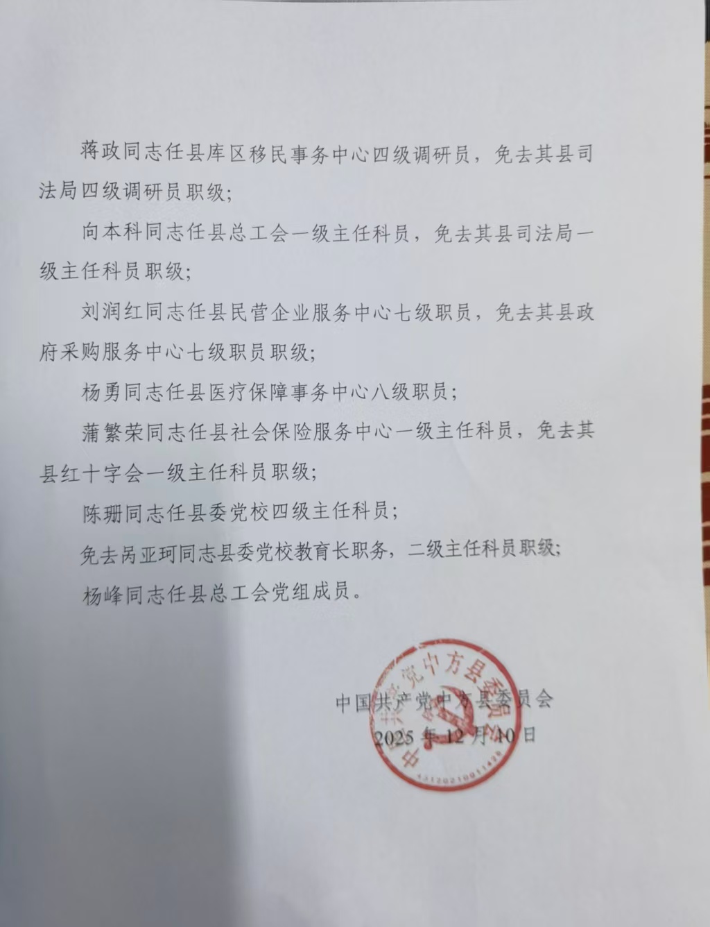 关于人事任免的信息