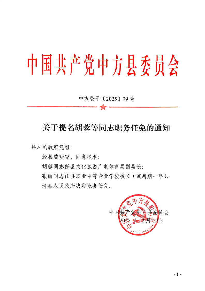 关于提名胡蓉等同志职务任免的通知