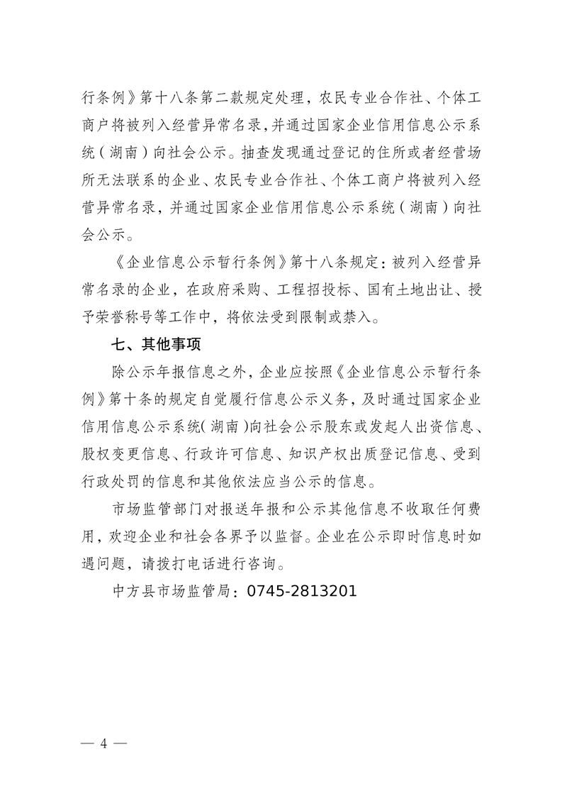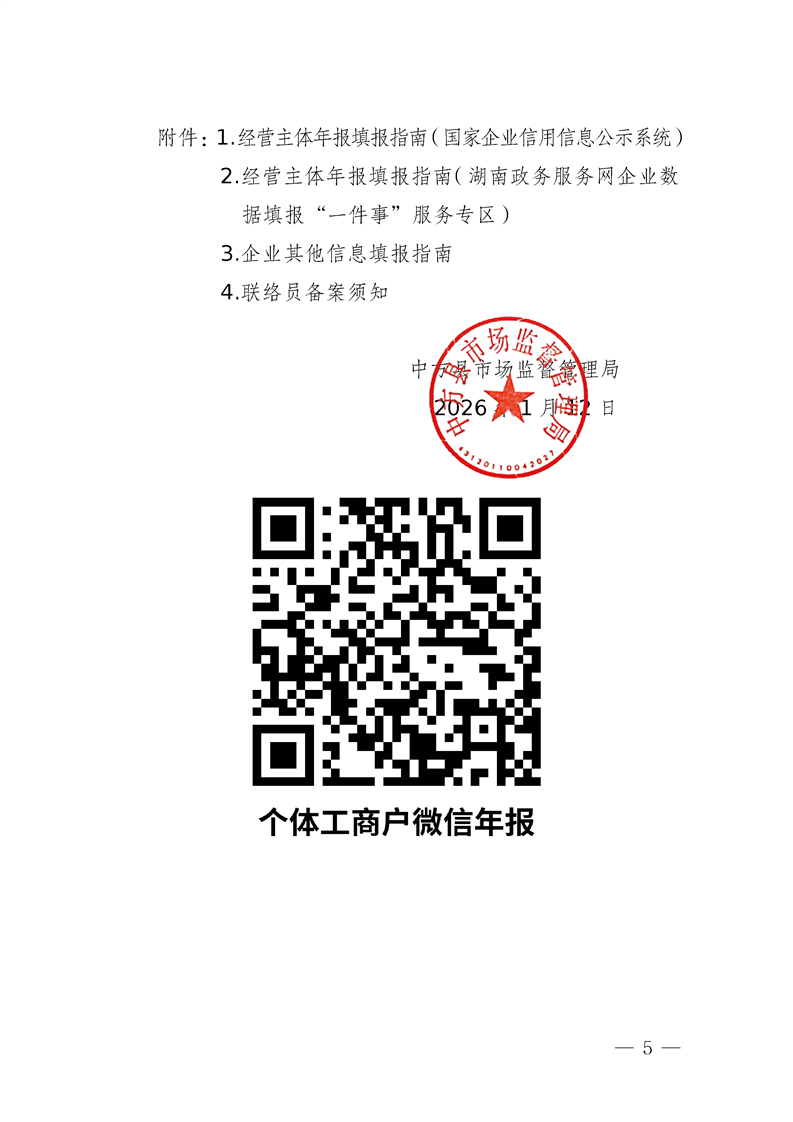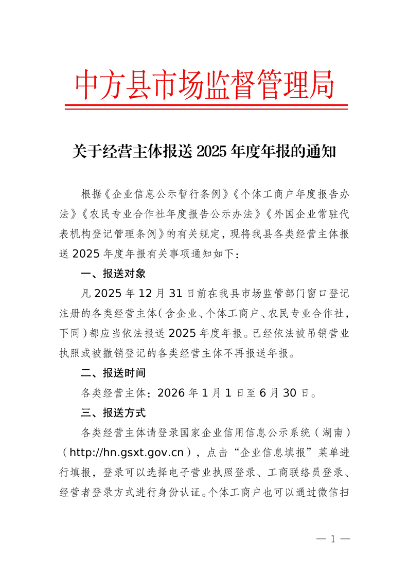 中方县市场监督管理局关于经营主体报送2025年度年报的通知
