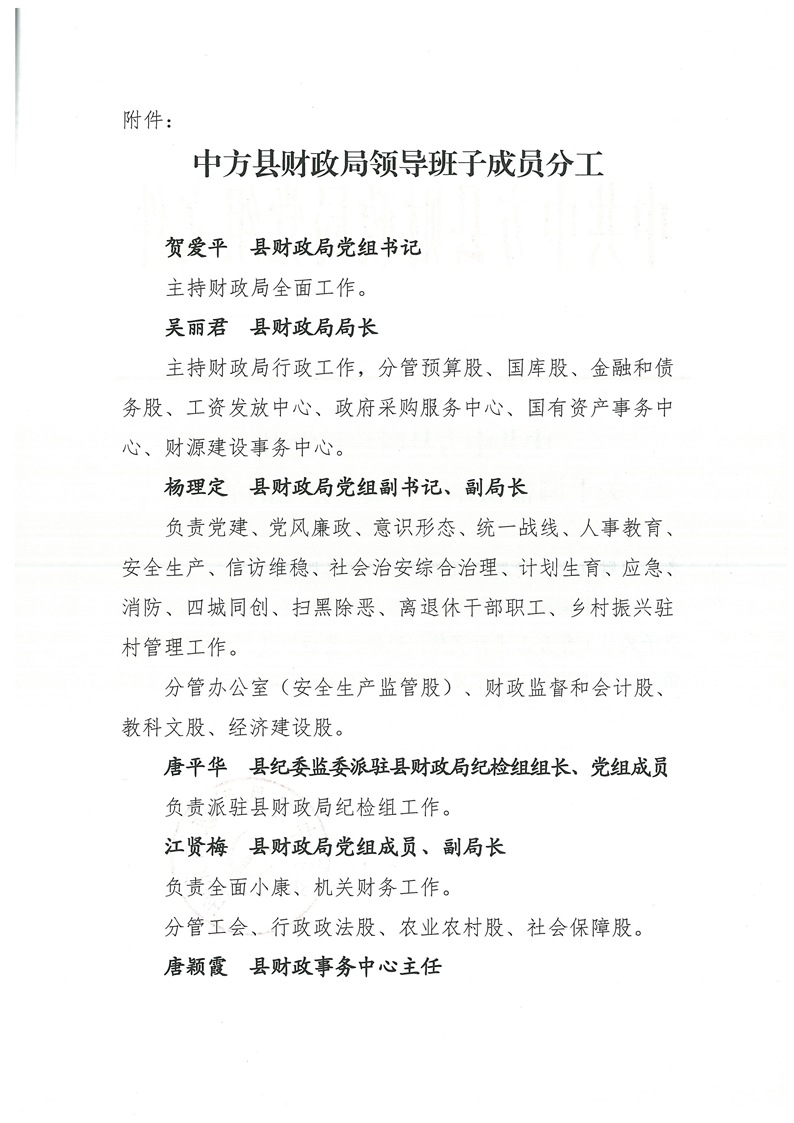中共中方县财政局党组关于调整领导班子成员分工的通知.pdf
