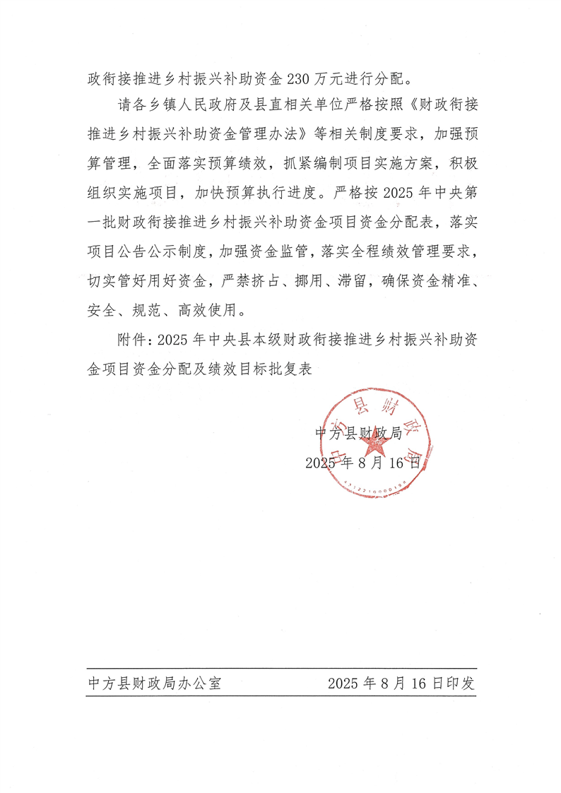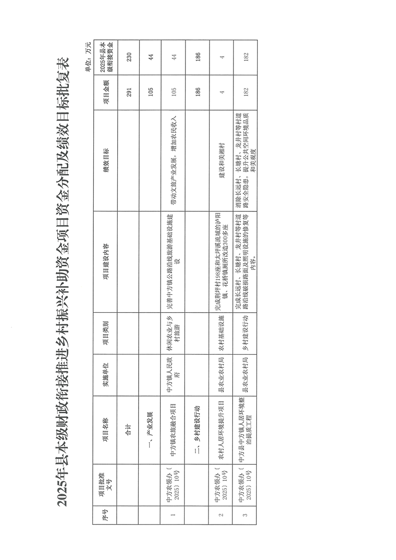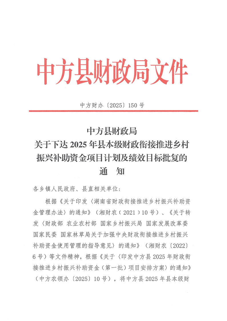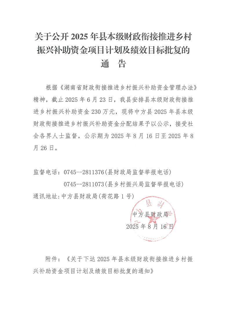 关于公开2025年县本级财政衔接推进乡村振兴补助资金项目计划及绩效目标批复的通告