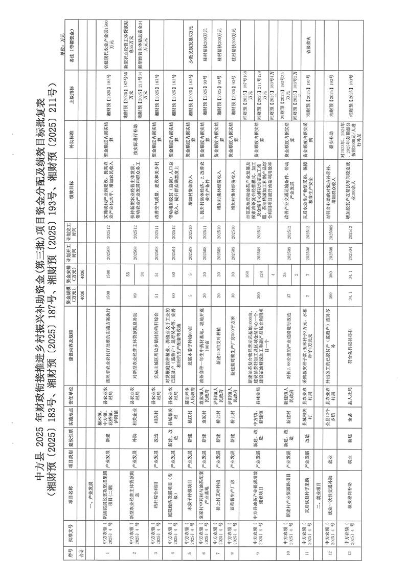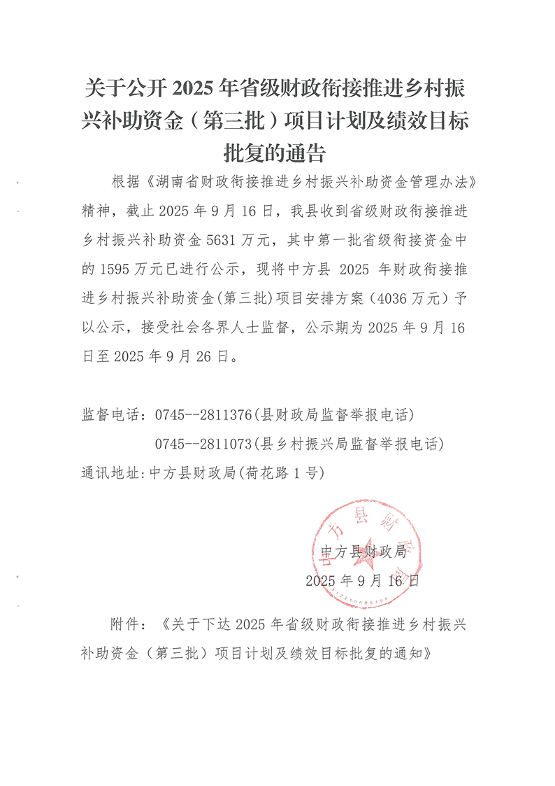 关于公开2025年省级财政衔接推进乡村振兴补助资金(第三批)项目计划及绩效目标批复的通告