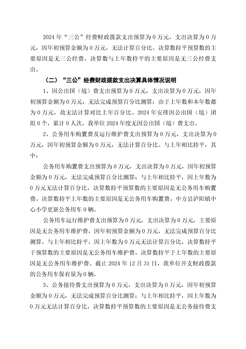 中方县泸阳镇中心小学2024年部门决算公开