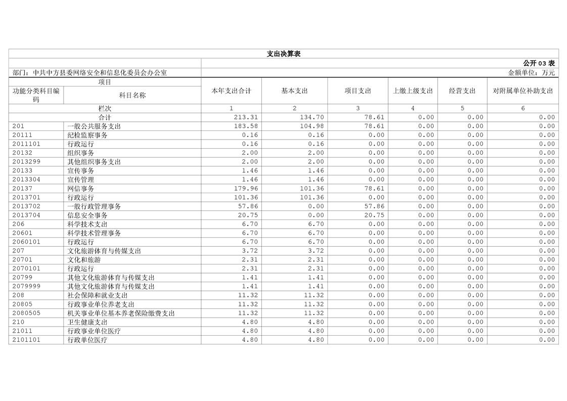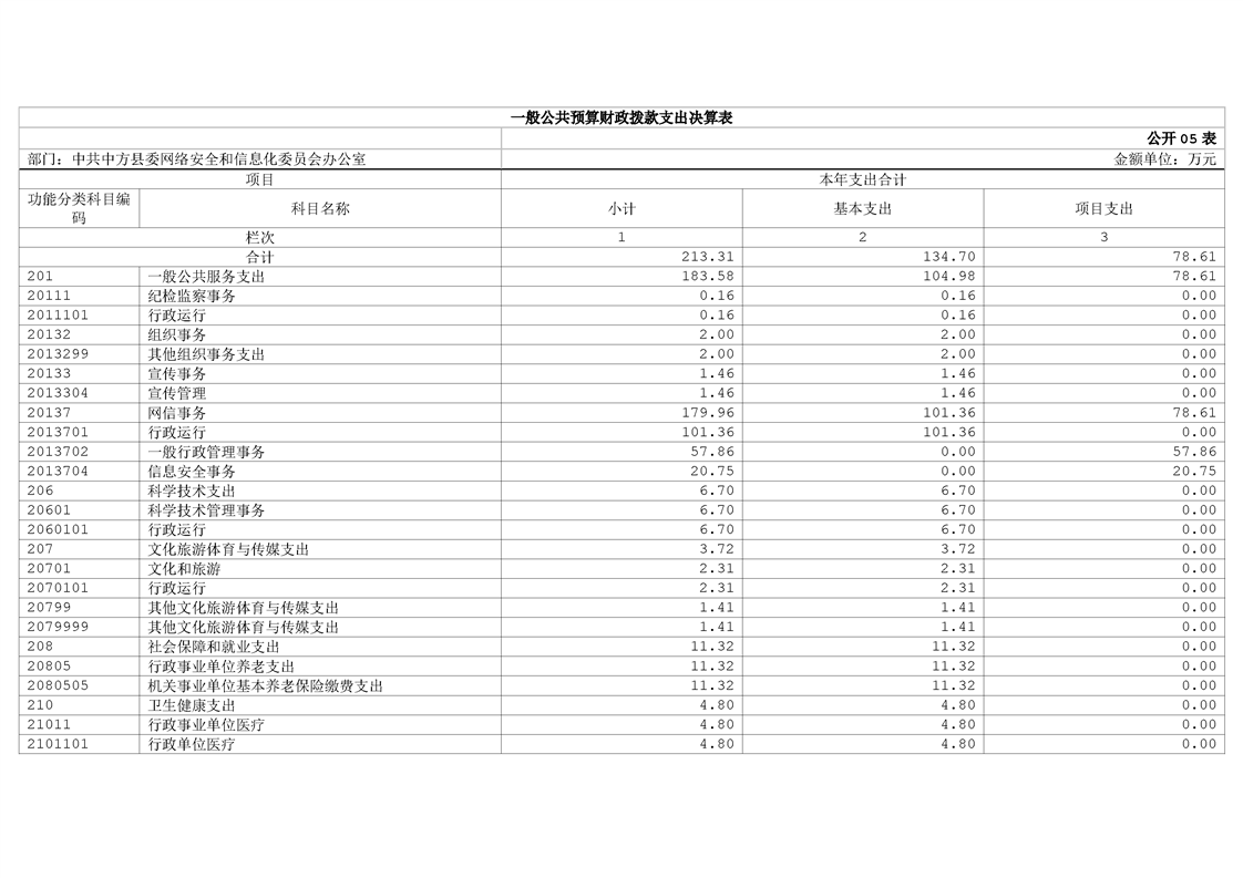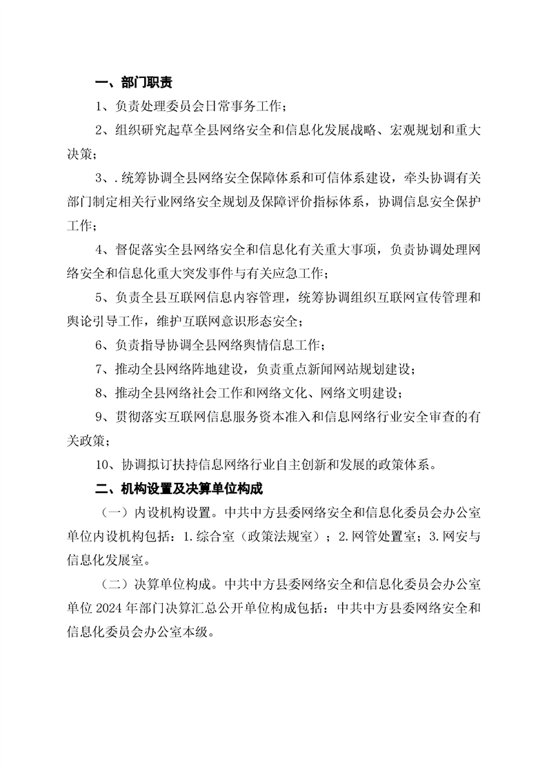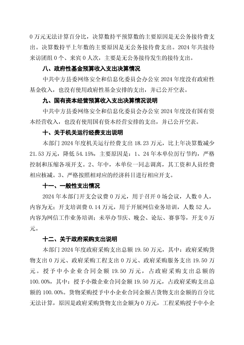 中共中方县委网络安全和信息化委员会办公室2024年部门决算公开