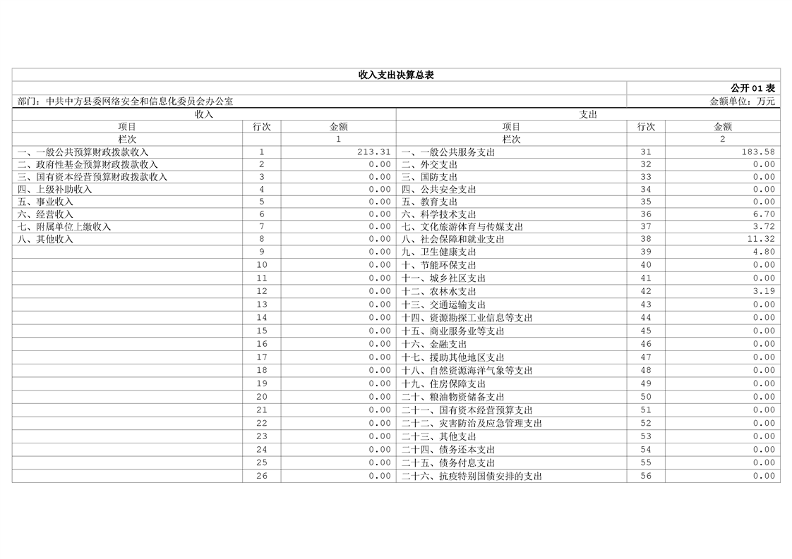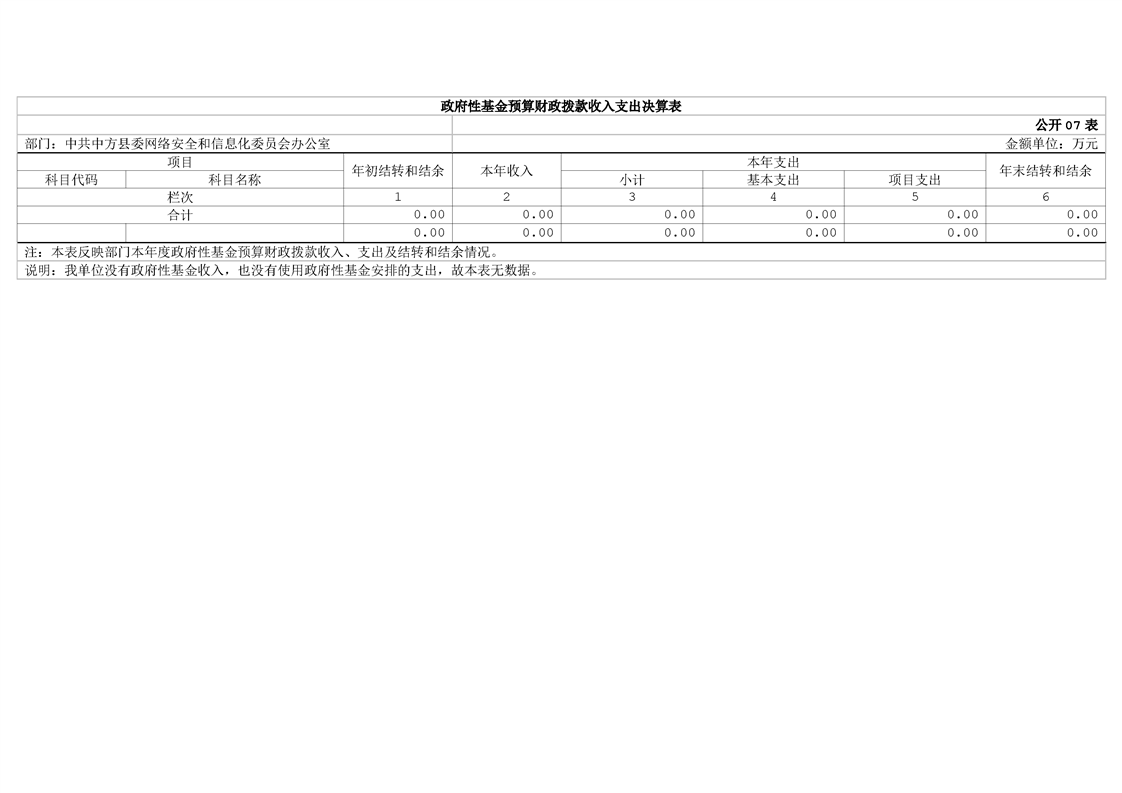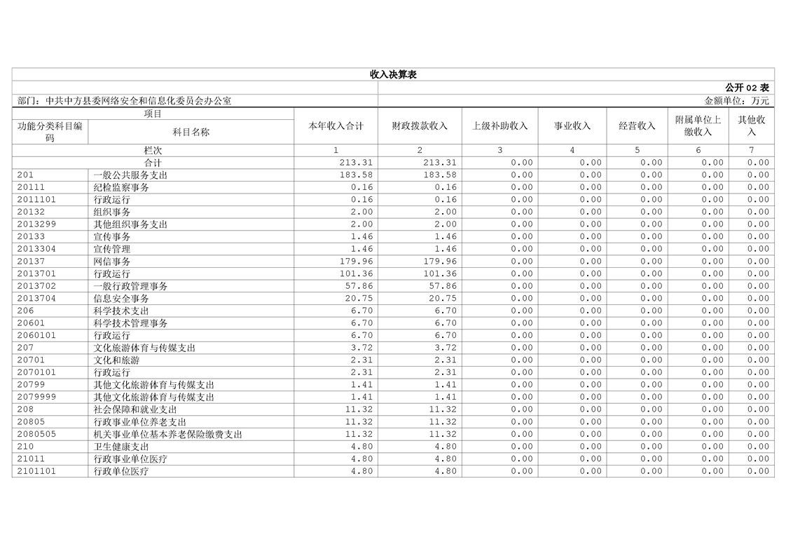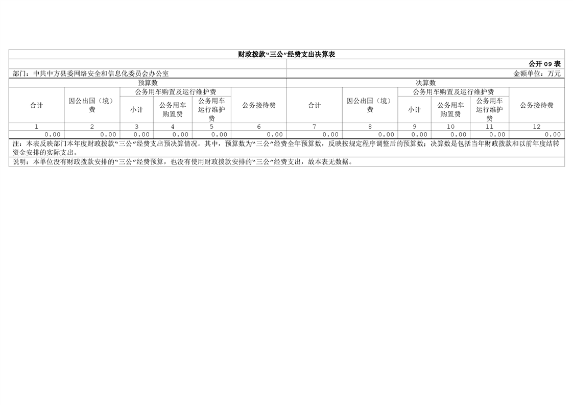 中共中方县委网络安全和信息化委员会办公室2024年部门决算公开