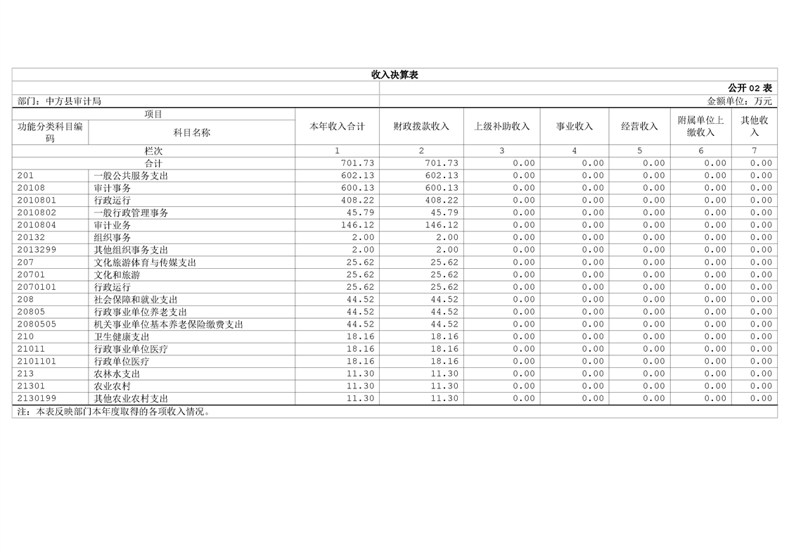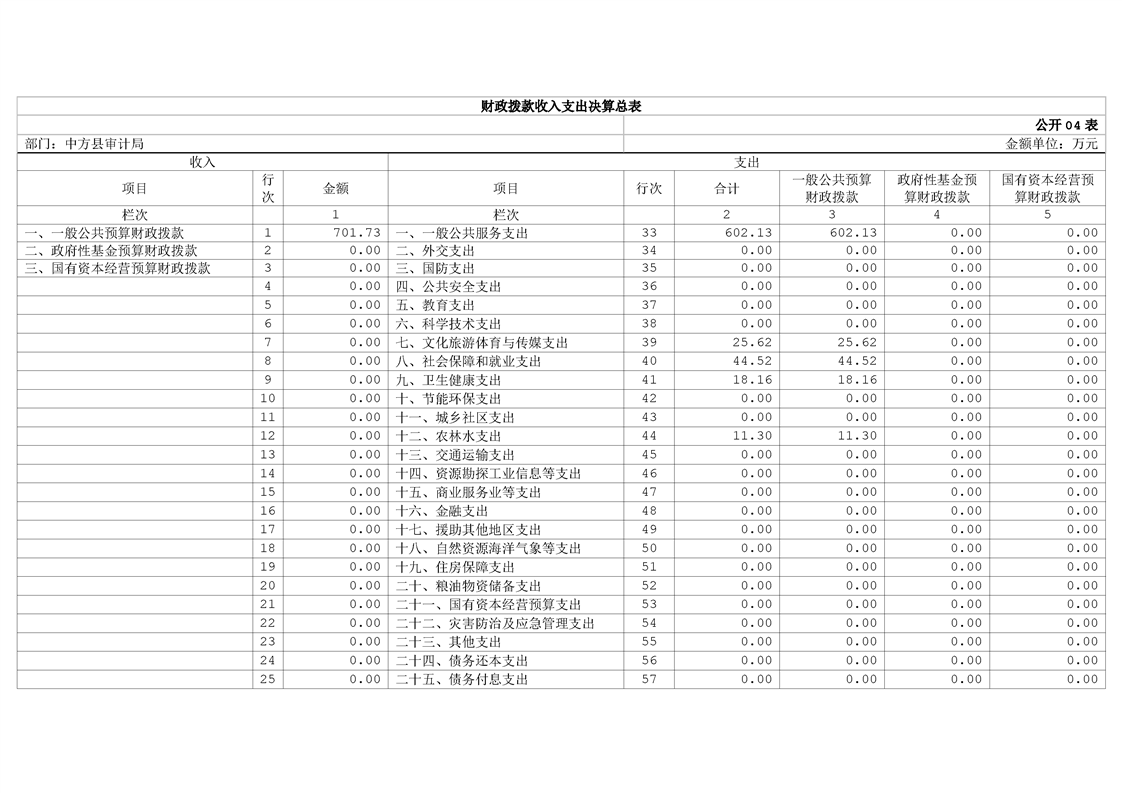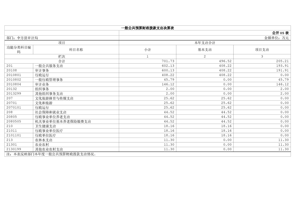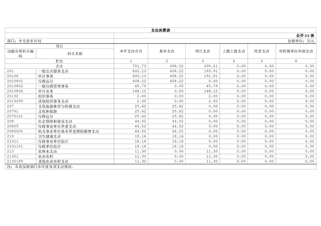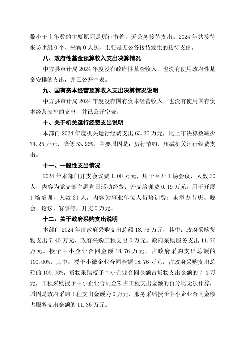 中方县审计局2024年部门决算公开