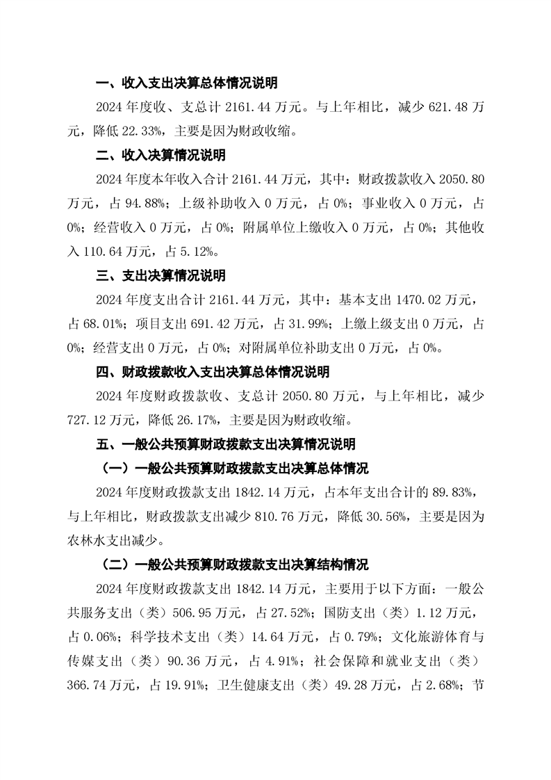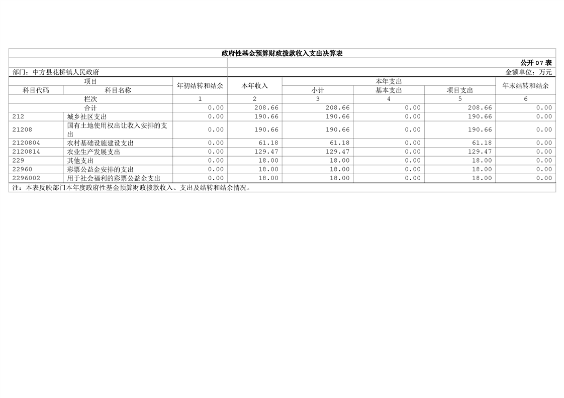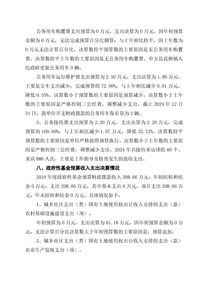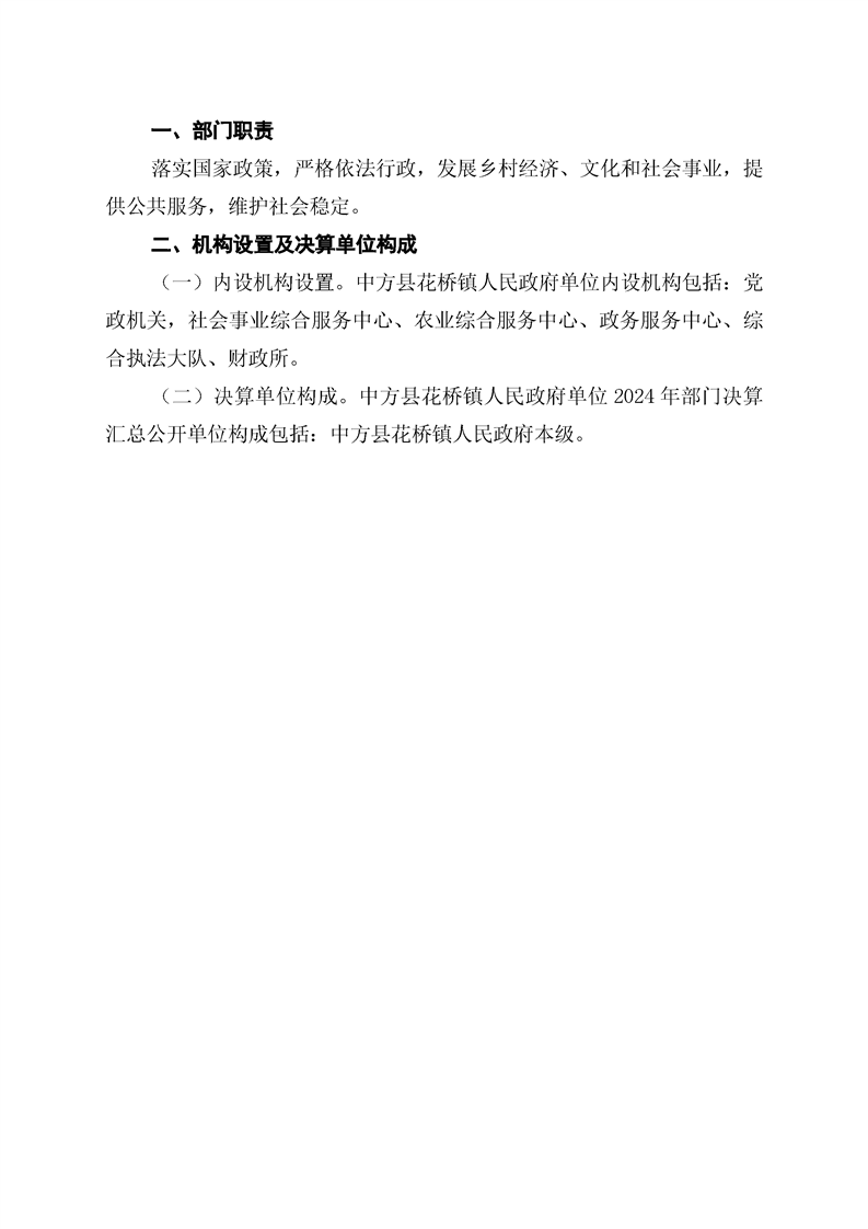 中方县花桥镇人民政府2024年部门决算公开