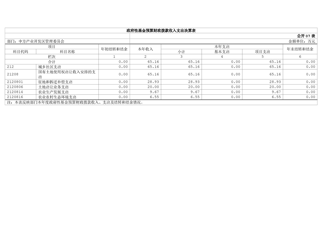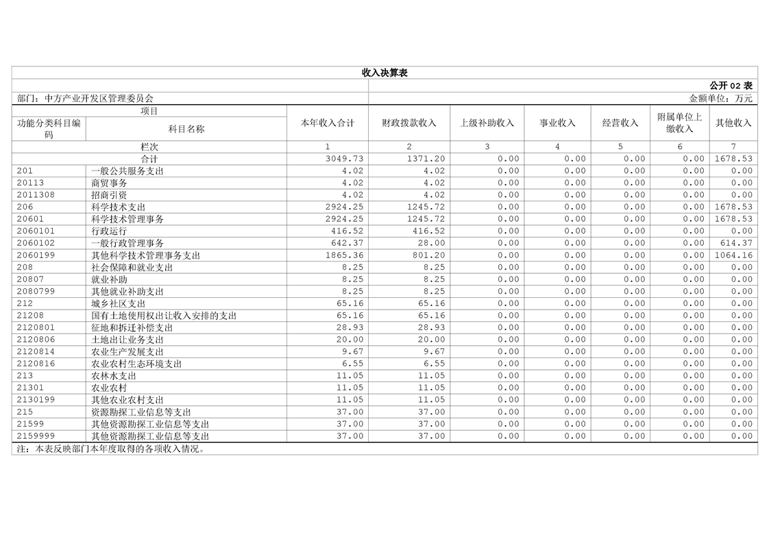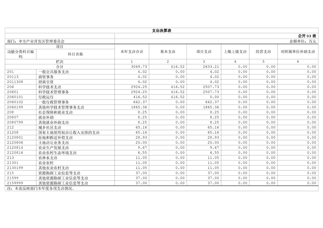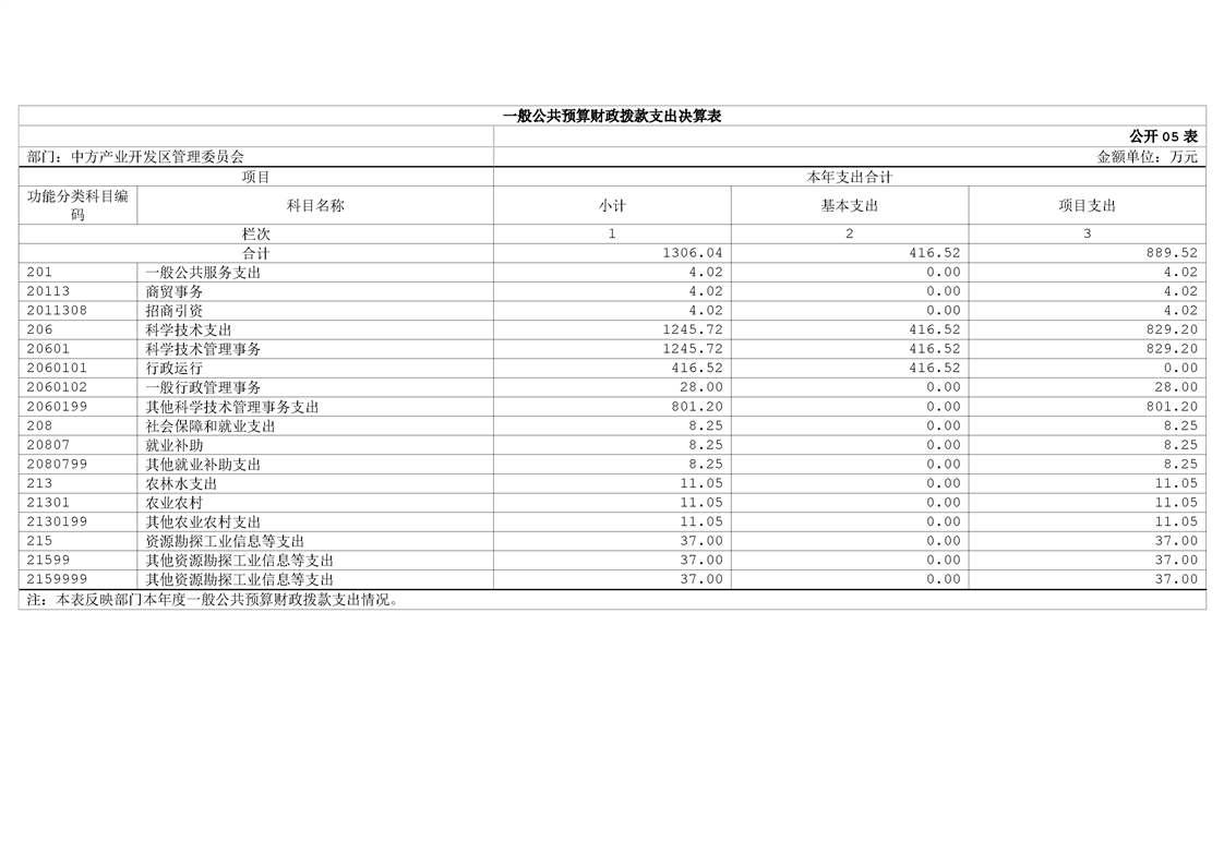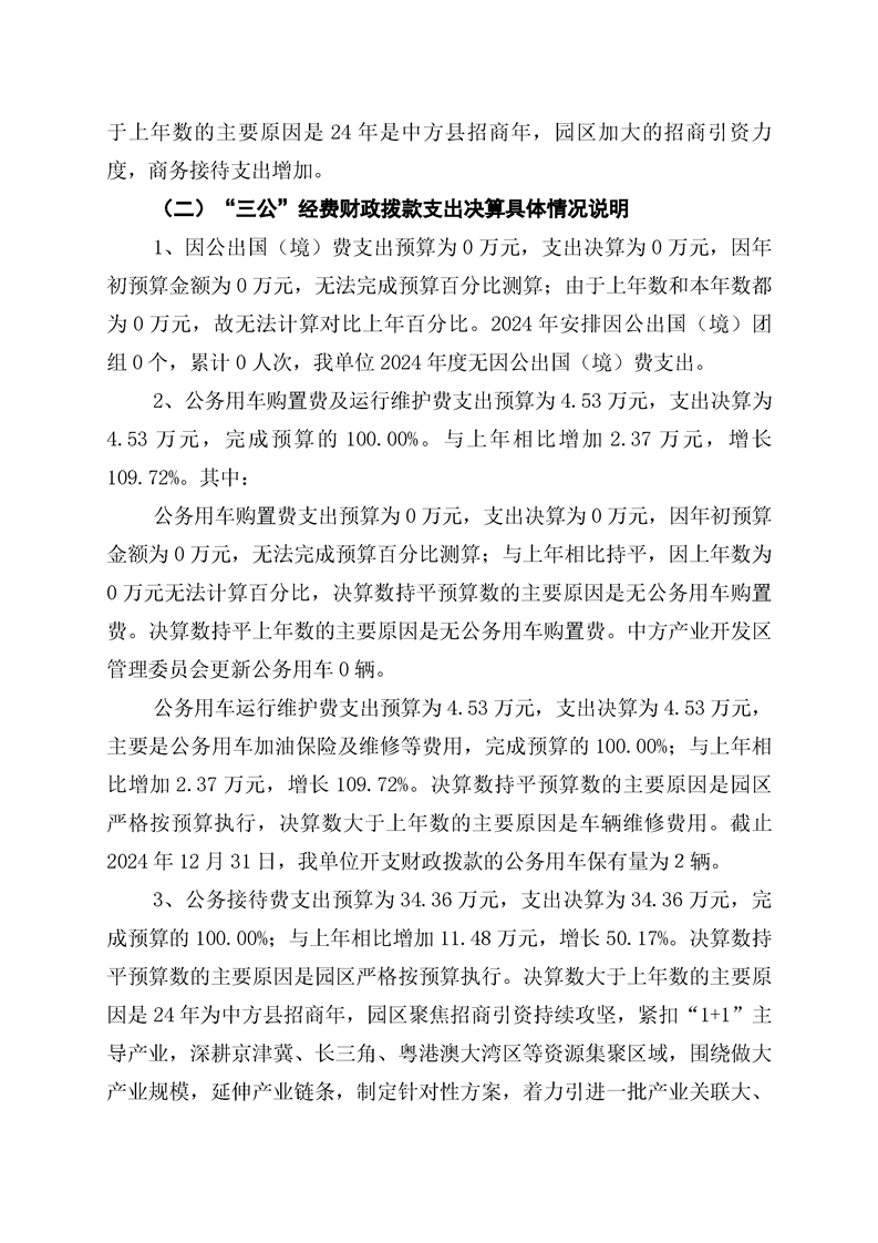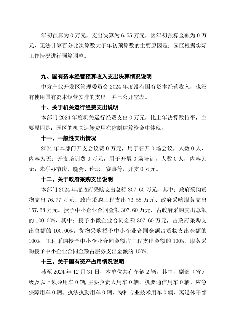 中方产业开发区管理委员会2024年部门决算公开