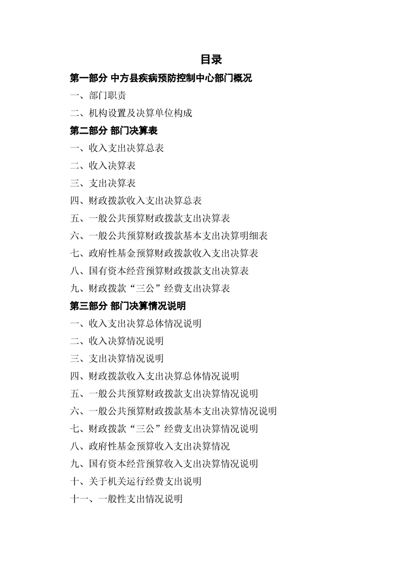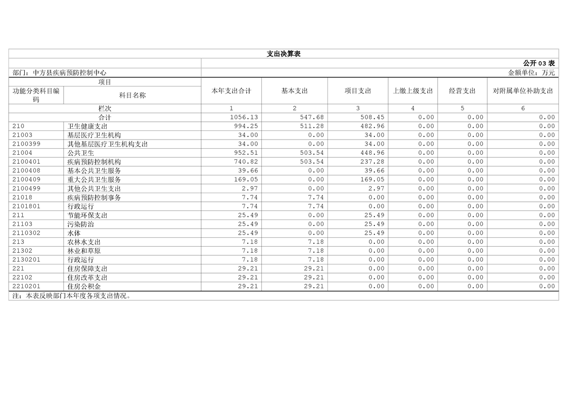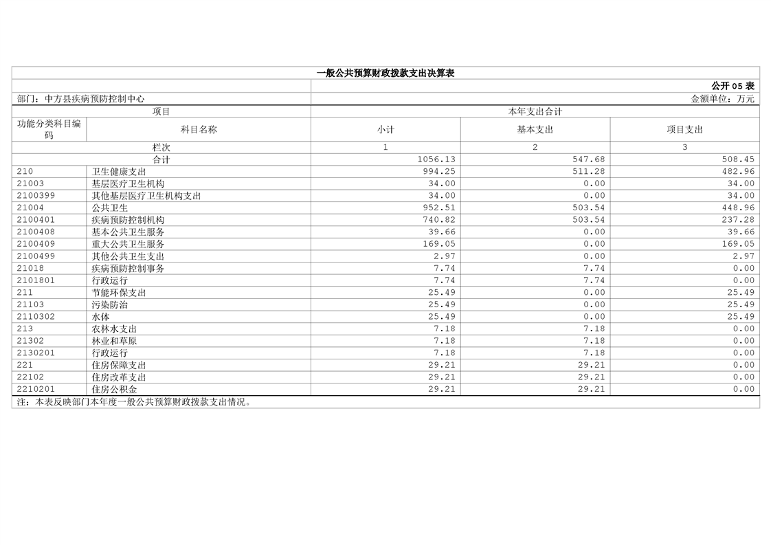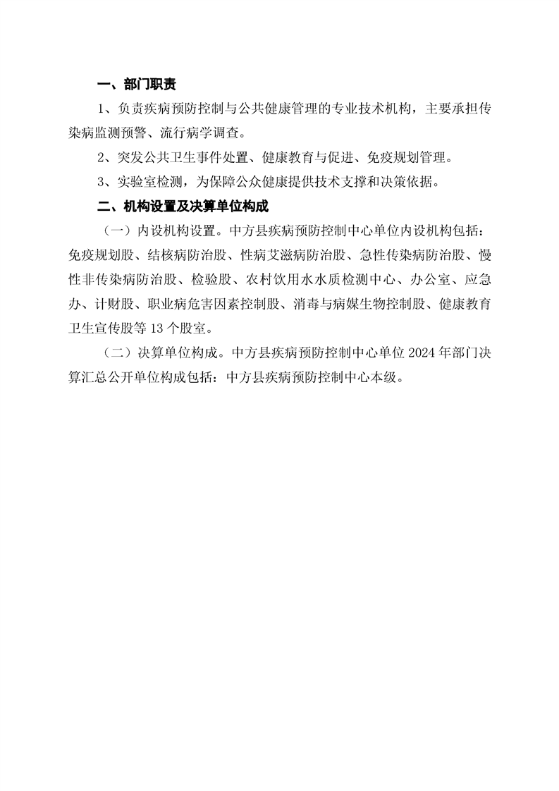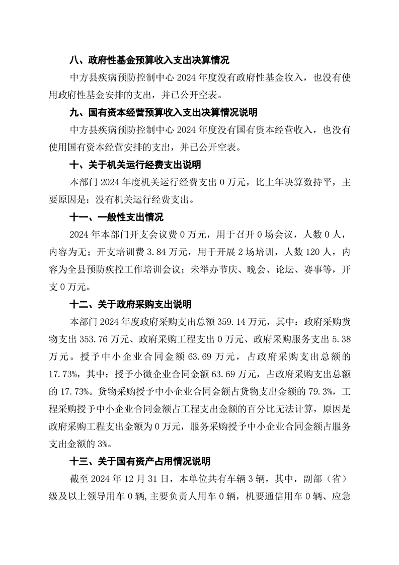 中方县疾病预防控制中心2024年部门决算公开