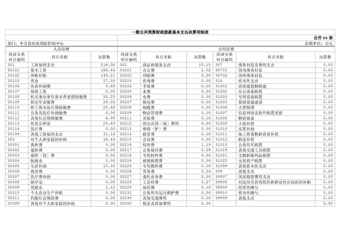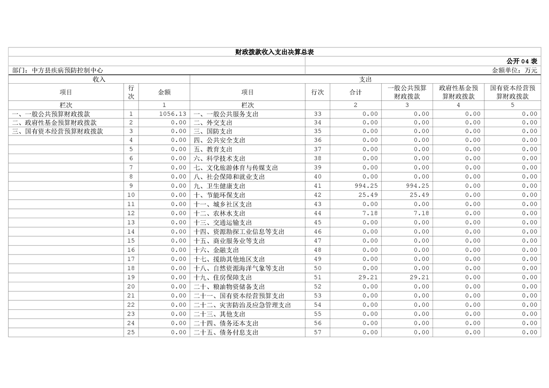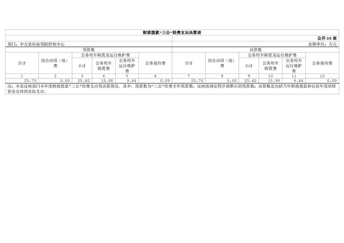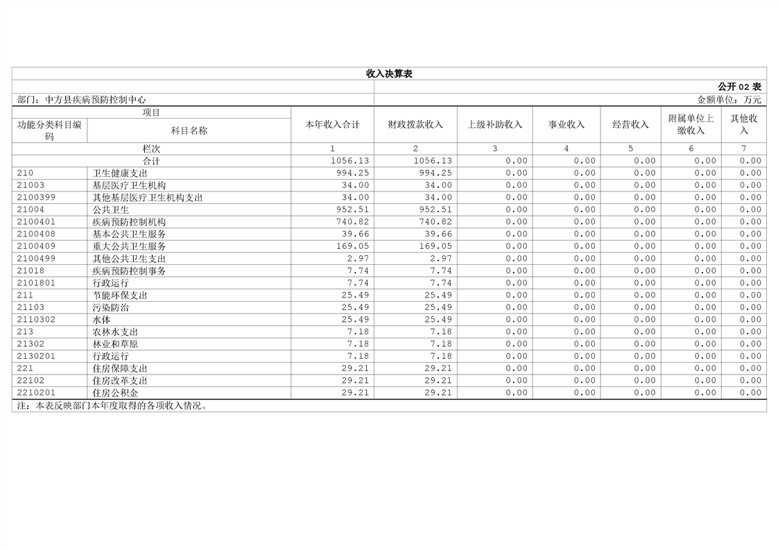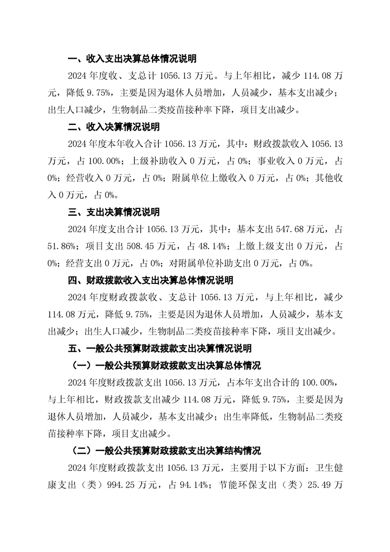 中方县疾病预防控制中心2024年部门决算公开