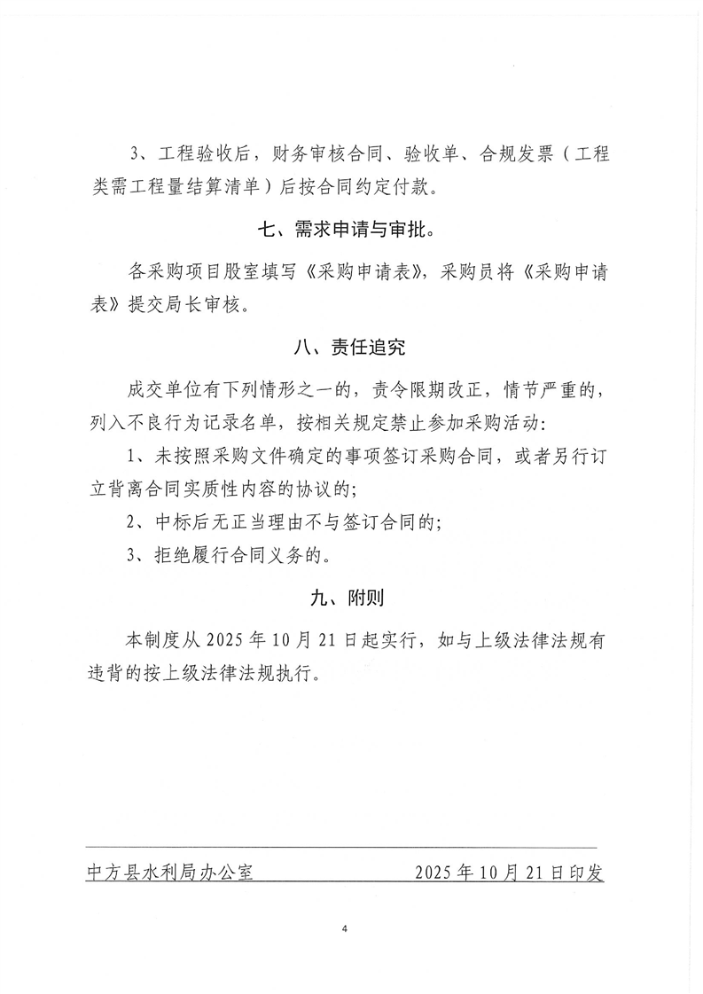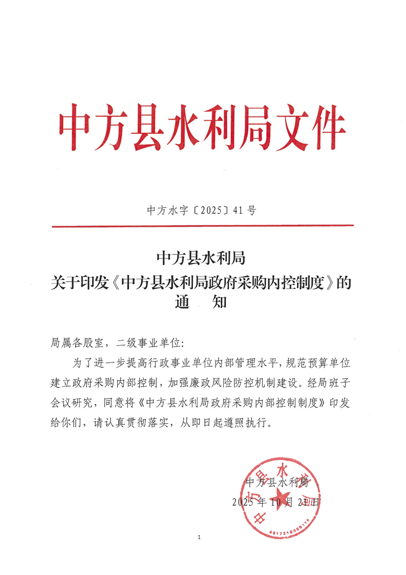 中方县水利局关于印发《中方县水利局政府采购内控制度》的通知