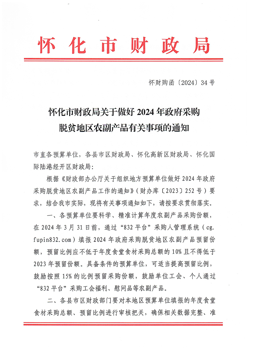 关于做好2024年政府采购脱贫地区农副产品有关事项的通知