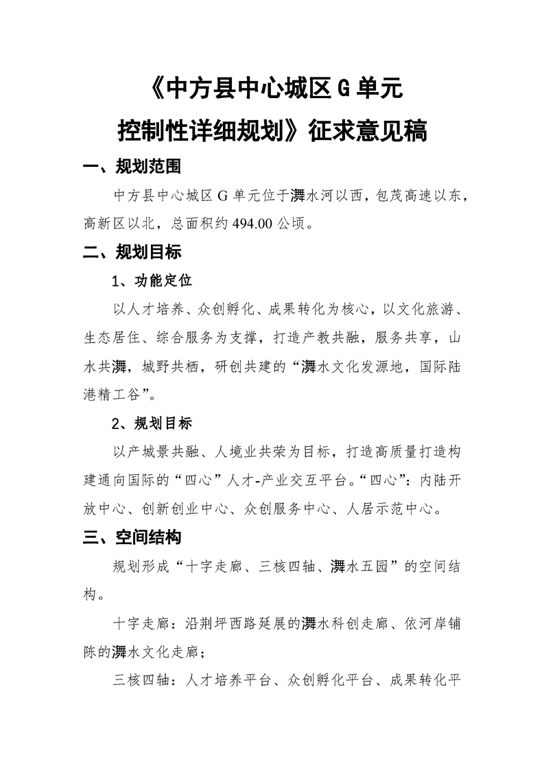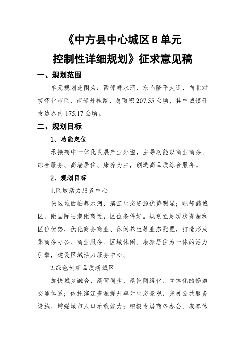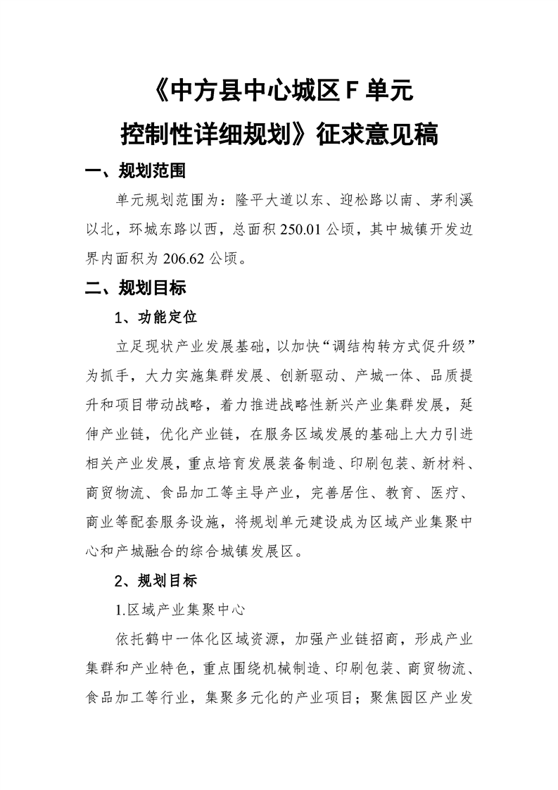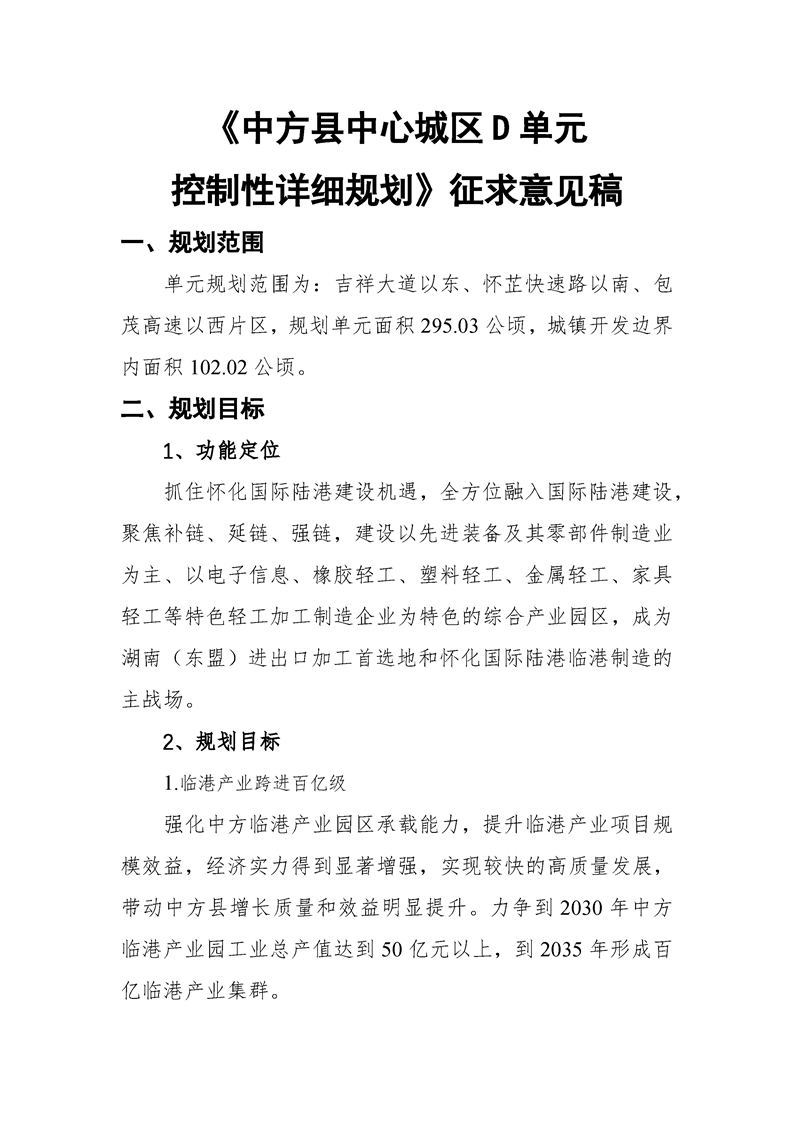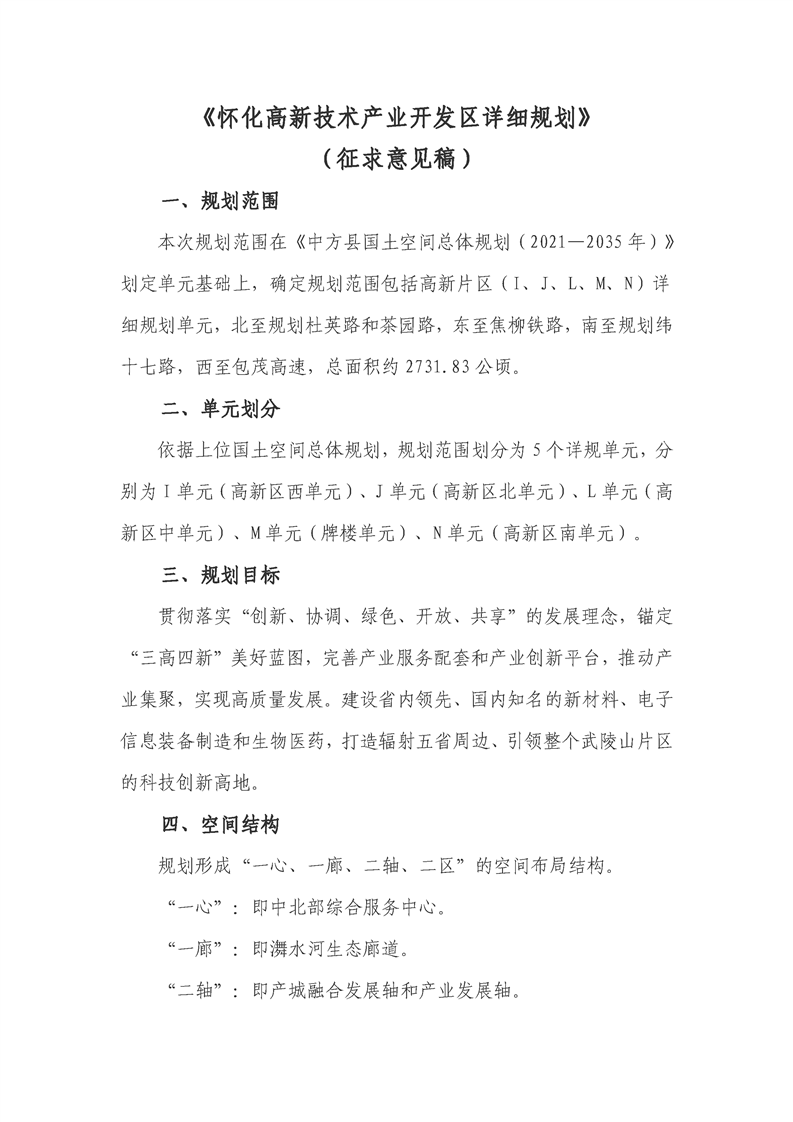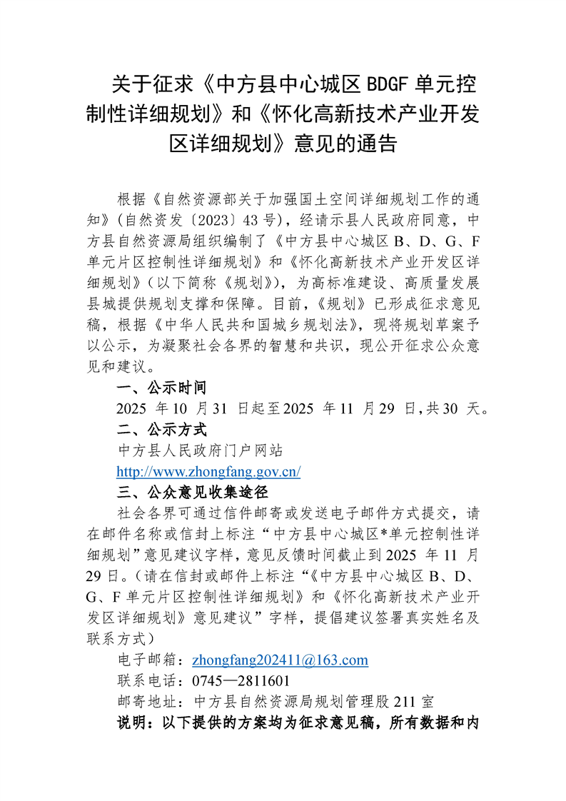 关于征求《中方县中心城区BDGF单元控制性详细规划》和《怀化高新技术产业开发区详细规划》意见的通告