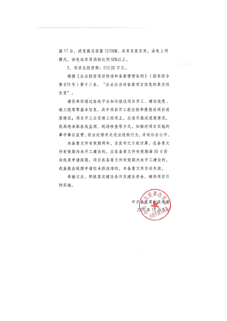 梧州市鼎腾新能源有限公司中方县1570KW屋顶工商业分布式光伏发电项目备案