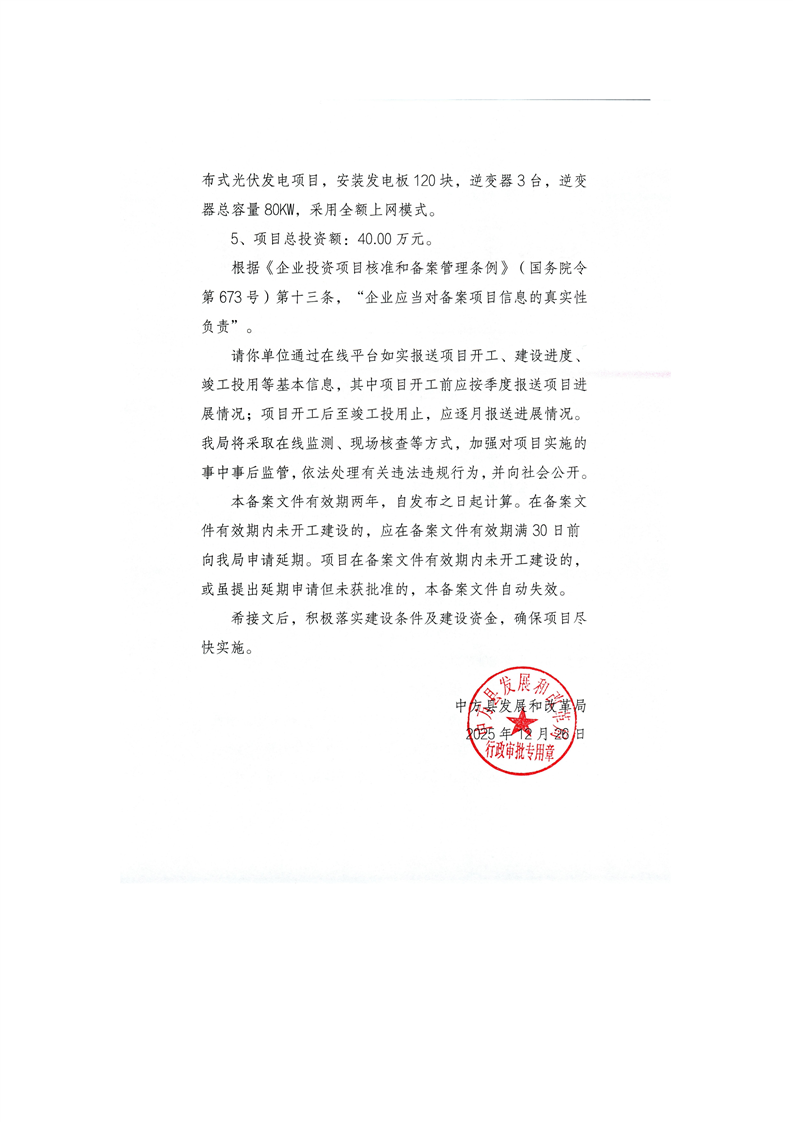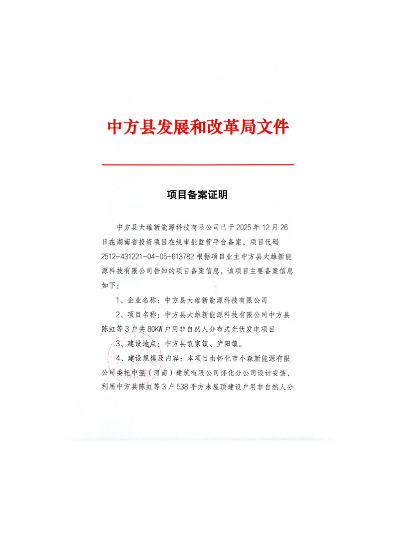 中方县大雄新能源科技有限公司中方县陈虹等3户共80KW户用非自然人分布式光伏发电项目备案