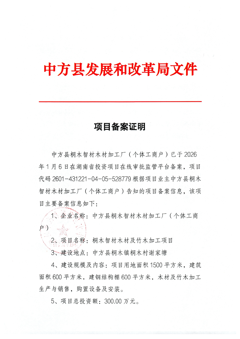 桐木智材木材及竹木加工项目备案