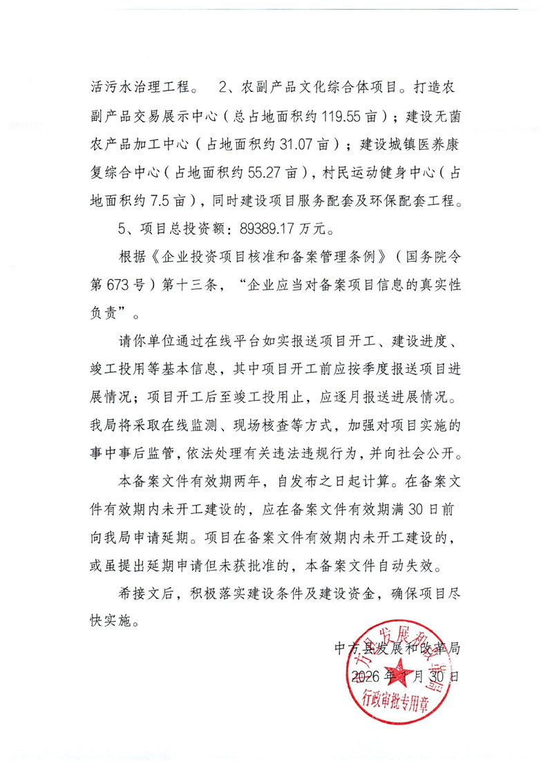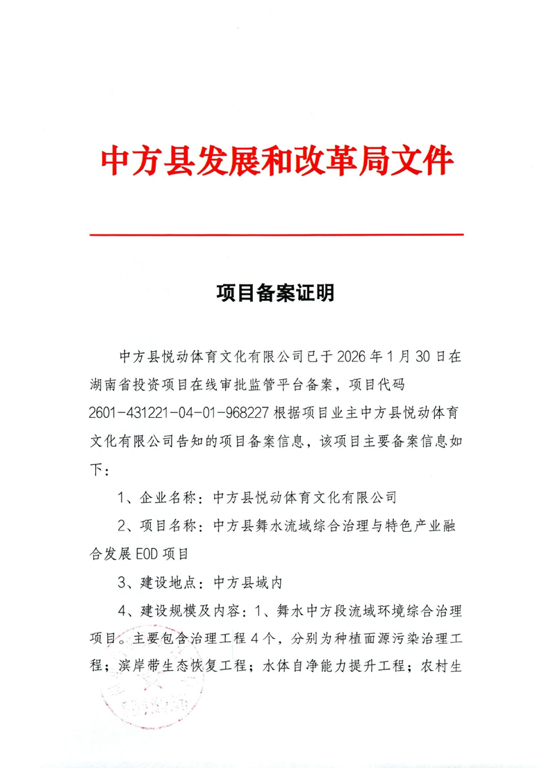 中方县舞水流域综合治理与特色产业融合发展EOD项目备案