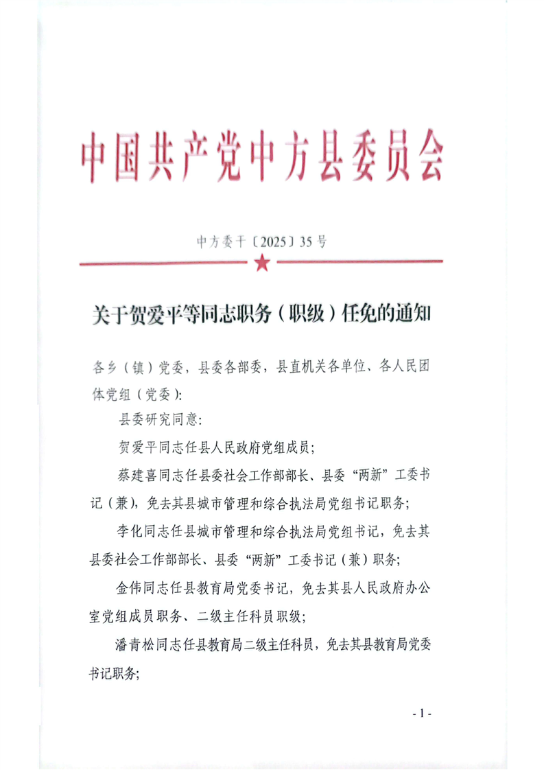 关于贺爱平等同志职务(职级)任免的通知