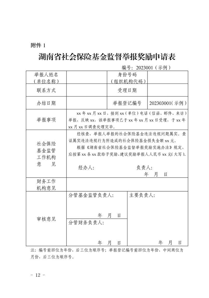 湖南省人力资源和社会保障厅 湖南省财政厅关于印发《湖南省社会保险基金监督举报奖励实施办法》的通知