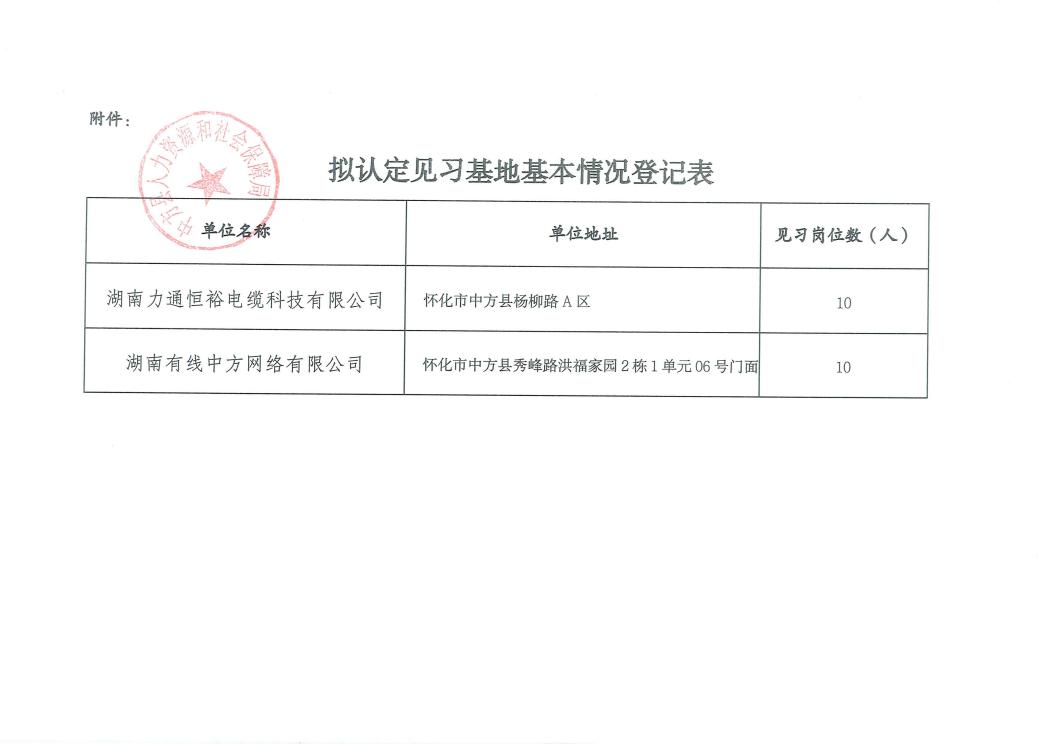 关于中方县2026年第一批青年(大学生)就业见习基地认定情况的公示