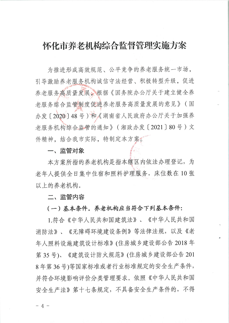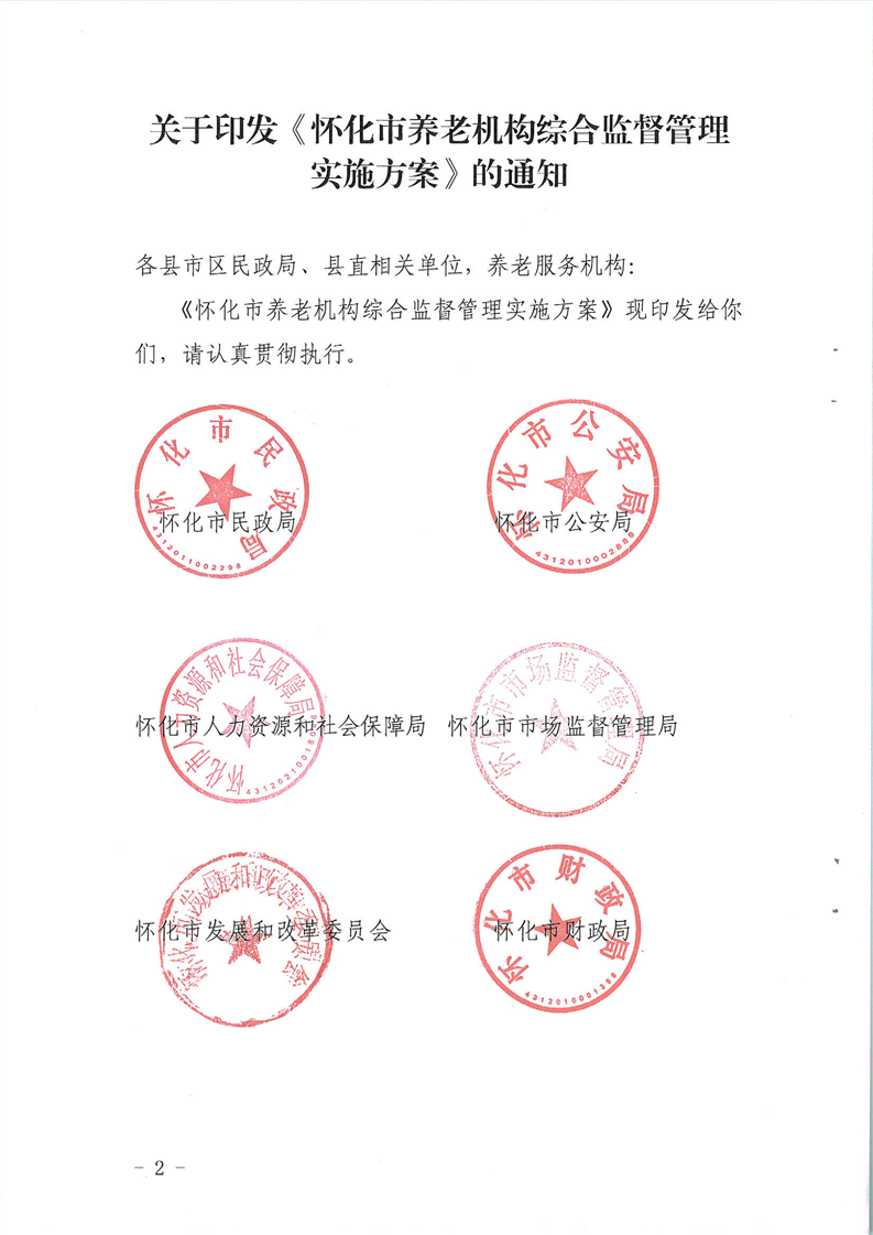 关于印发《怀化市养老机构综合监督管理实施方案》的通知