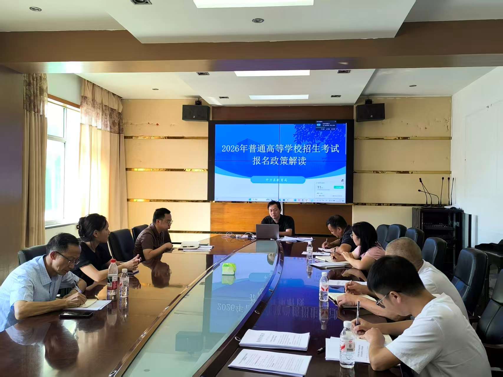 10月11日下午,中方县教育局围绕“2026年湖南省普通高等学校招生考试报名政策解读”主题,在县教育局三楼会议室开展了“政务公开主题日”活动。县教育招生考试中心负责人、县域内各高中学校分管副校长及高考信息专干参加了本次活动。